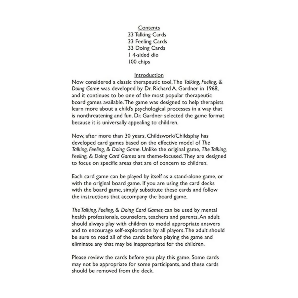 Al igual que el juego original, el juego de cartas es una forma segura para ayudar a los niños comunicar su sensación y desarrollar Insight en sus problemas