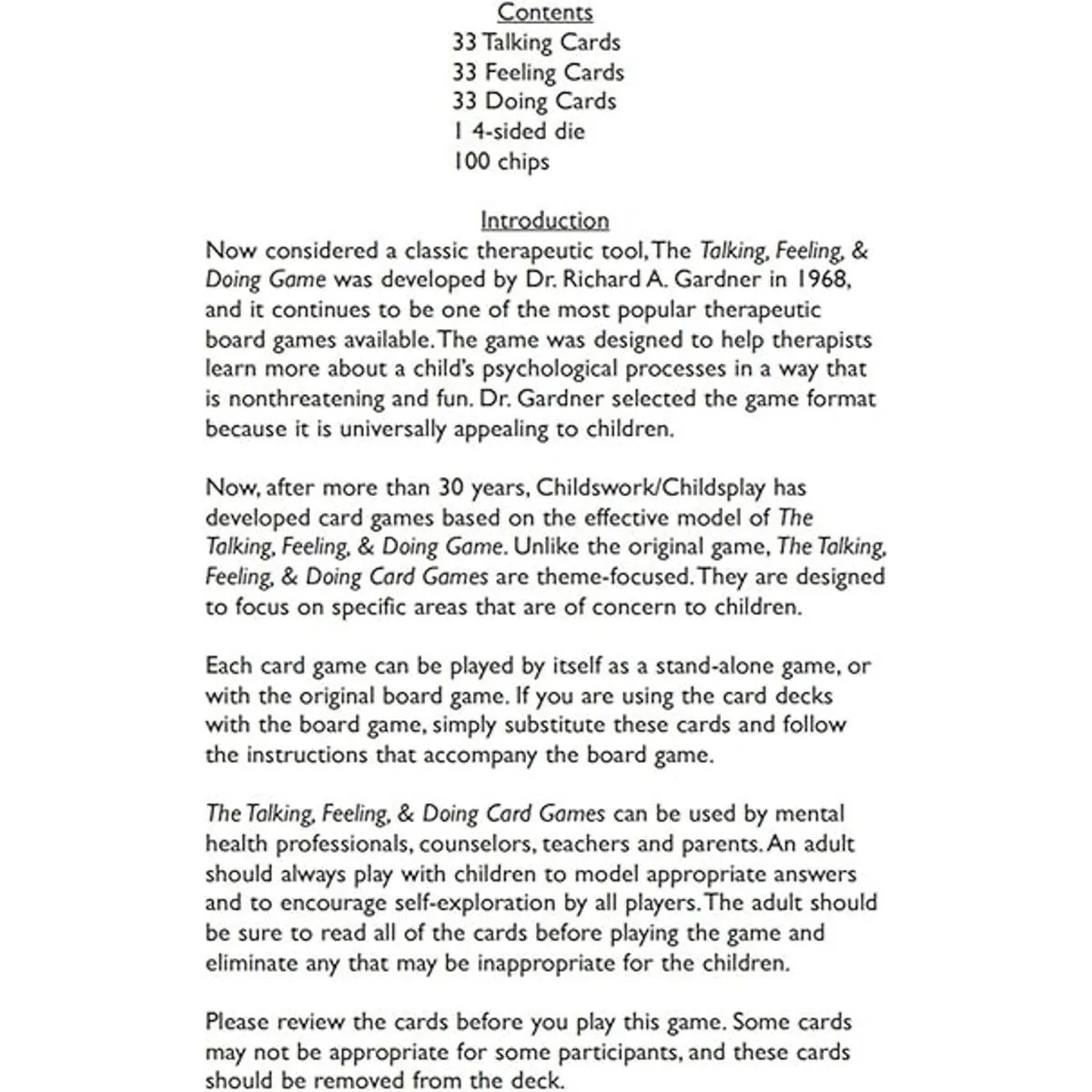Al igual que el juego original, el juego de cartas es una forma segura para ayudar a los niños comunicar su sensación y desarrollar Insight en sus problemas