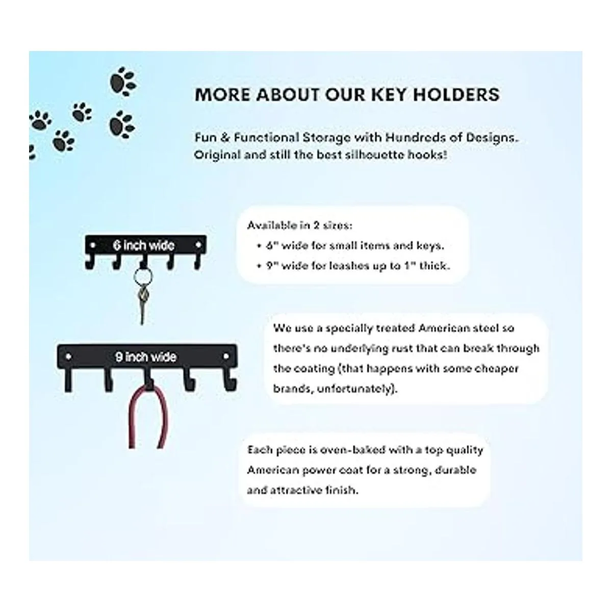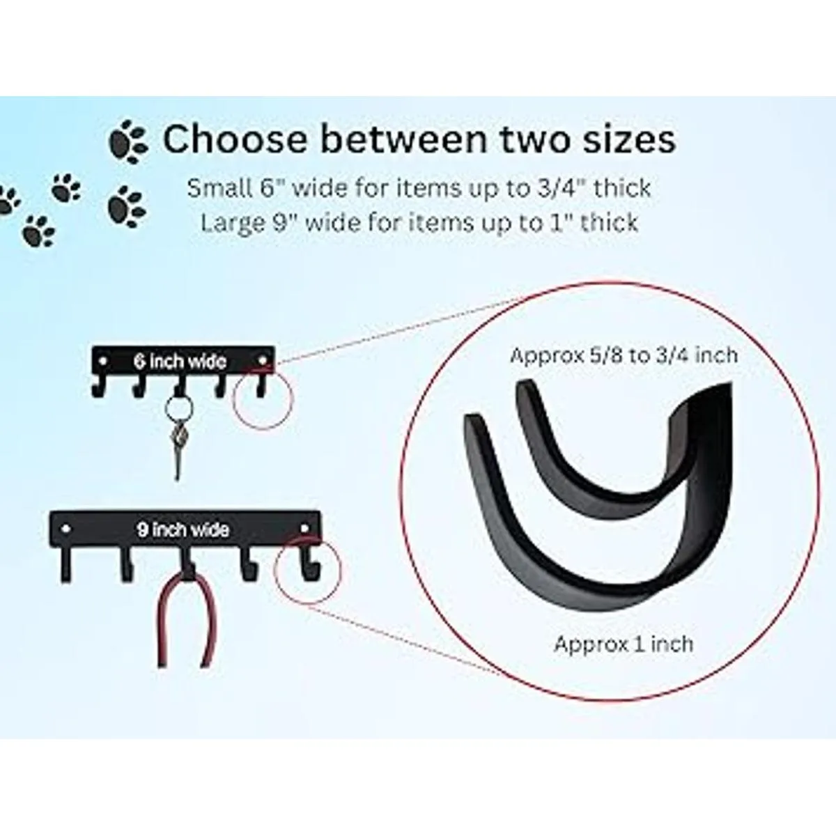 Este estante para llaves y correas es ideal para organizar y almacenar en el hogar, oficina, garaje o granero Este soporte para llaves y correa tiene 5 ganchos redondeados para colgar llaves de coche, correa o arnés de tu perro, dispensadores de bolsas de residuos de perro, cordones, cables y cables, medallas, collares, máscaras faciales u otros objetos pequeños. Y un imán se pegará a él.