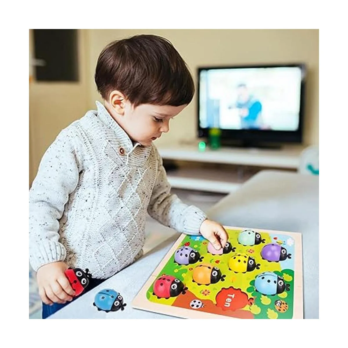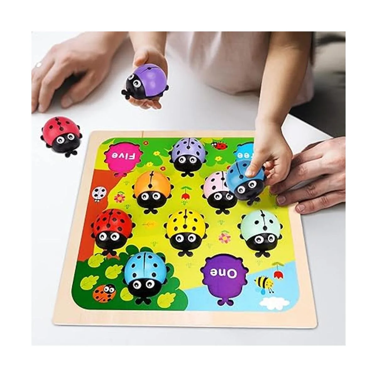 Juguete educativo de aprendizaje de madera: el tamaño de las mariquitas está diseñado para que las manos pequeñas jueguen, mejorando la destreza y la coordinación. Forma divertida de explorar números y contar. Los juguetes Waldorf son muy divertidos y pueden mantener a tu hijo disfrutado durante horas. Tamaño de la tabla: 11.6 x 11.6 pulgadas. Tamaño de las mariquitas: 2.5 x 2.1 x 1 pulgadas.