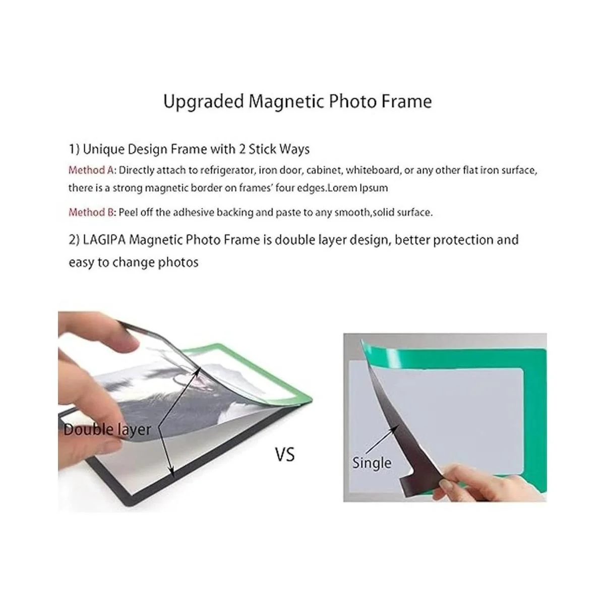 LAGIPA Marco magnético para fotos 8 unidades, 4 x 6, marco de fotos magnético, para nevera, hogar, oficina, pared, imán para nevera, imán y 2 maneras de palo