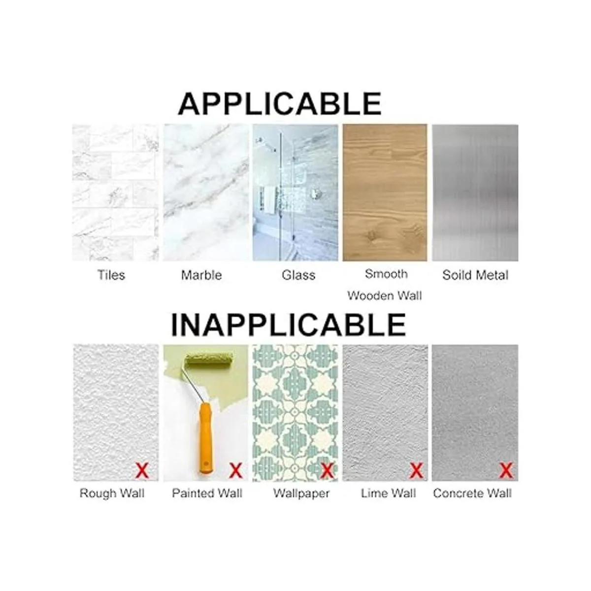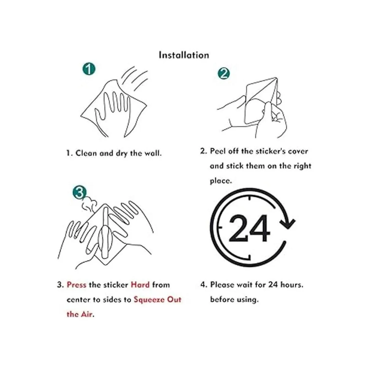 Aviso de instalación: la superficie de la pared debe estar lisa y seca. No es adecuado para papel de pared o pared pintada, ya que se despegará de su pintura o papel pintado. Retira el aire de centro a lado para hacer que el gancho se adhiera completamente a la pared.