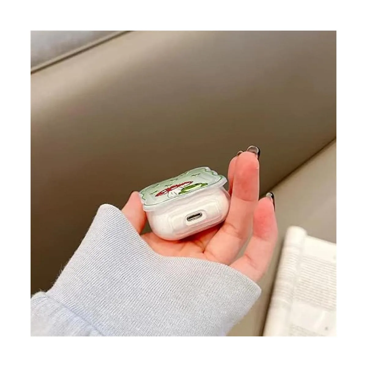 Material de alta calidad: esta funda protectora para AirPods está hecha de material TPU de alta calidad. Esta es una funda muy diferente, fresca y elegante, ligera y pequeña, forma única de dibujos animados que puede traerte un buen estado de ánimo.