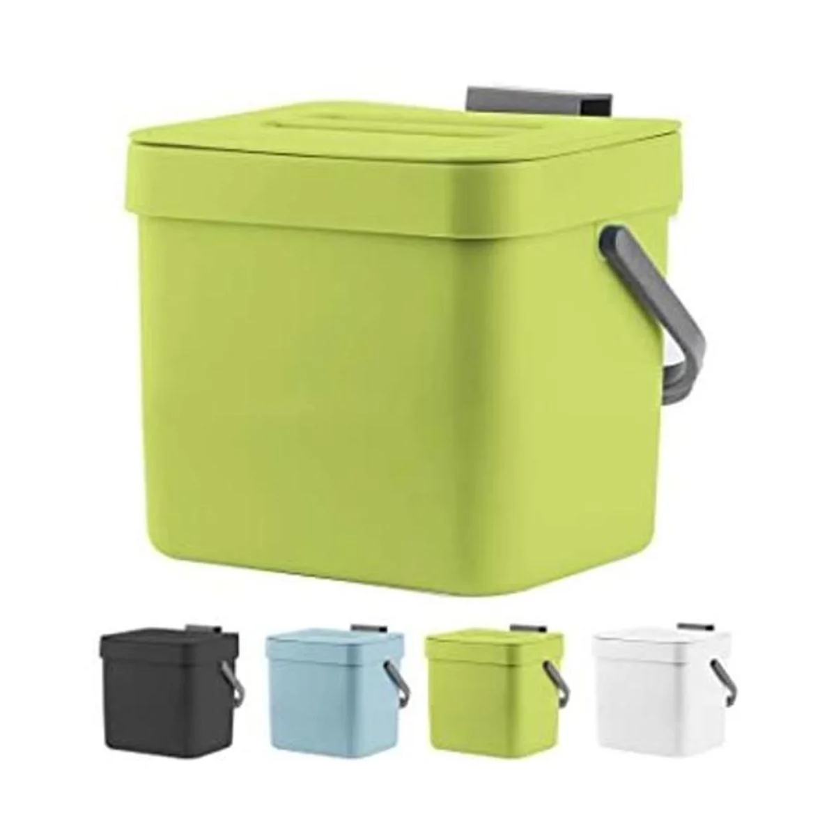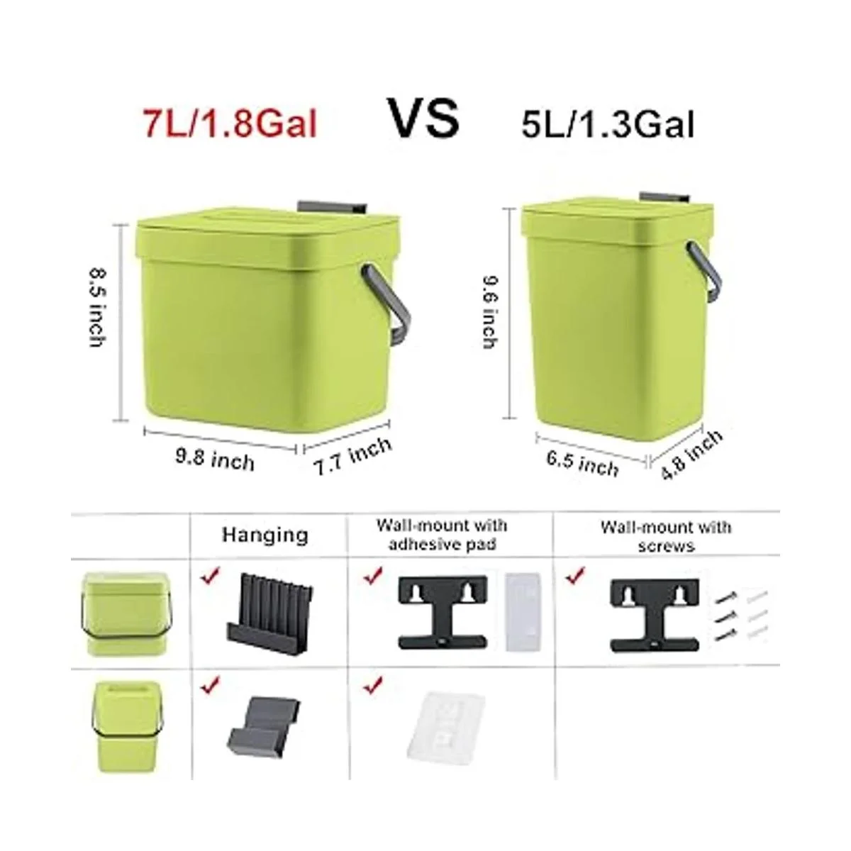LALASTAR Bote de basura colgante para compostaje de cocina interior sellado, pequeño cubo de basura con tapa, cubo de basura de plástico desmontable para cocina, baño, despensa, encimera, debajo del fregadero, pared, 1.8 galones, verde