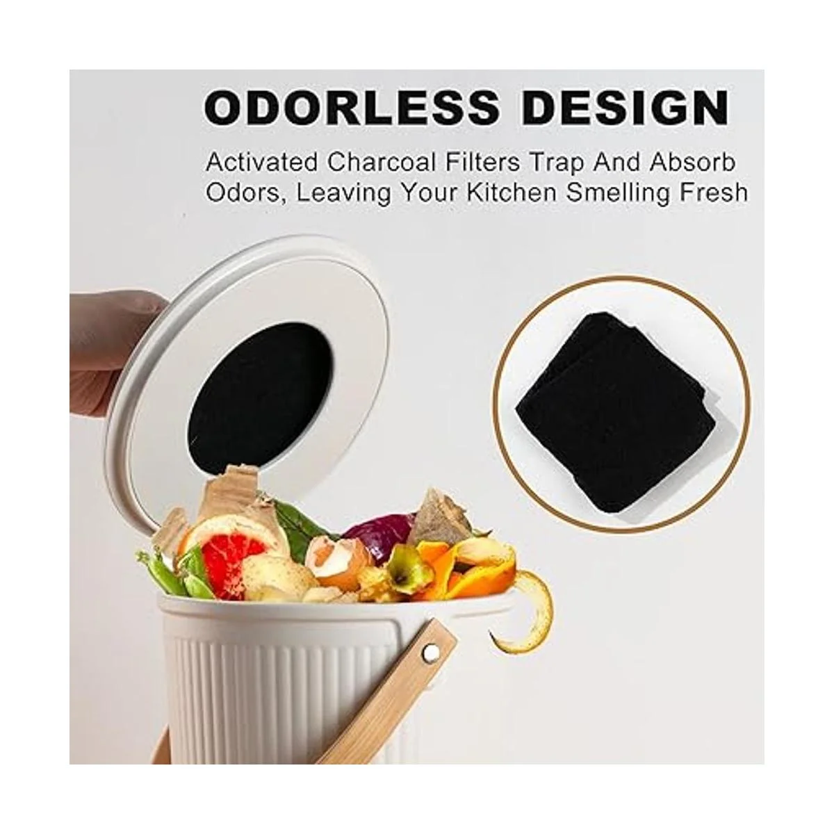 Sin olor: el contenedor de compost tiene una tapa ventilada y un filtro de carbón que absorbe y atrapa los olores dentro del cubo de compost. No te preocupes por que tu cocina descomponga los residuos olorosos de nuevo.