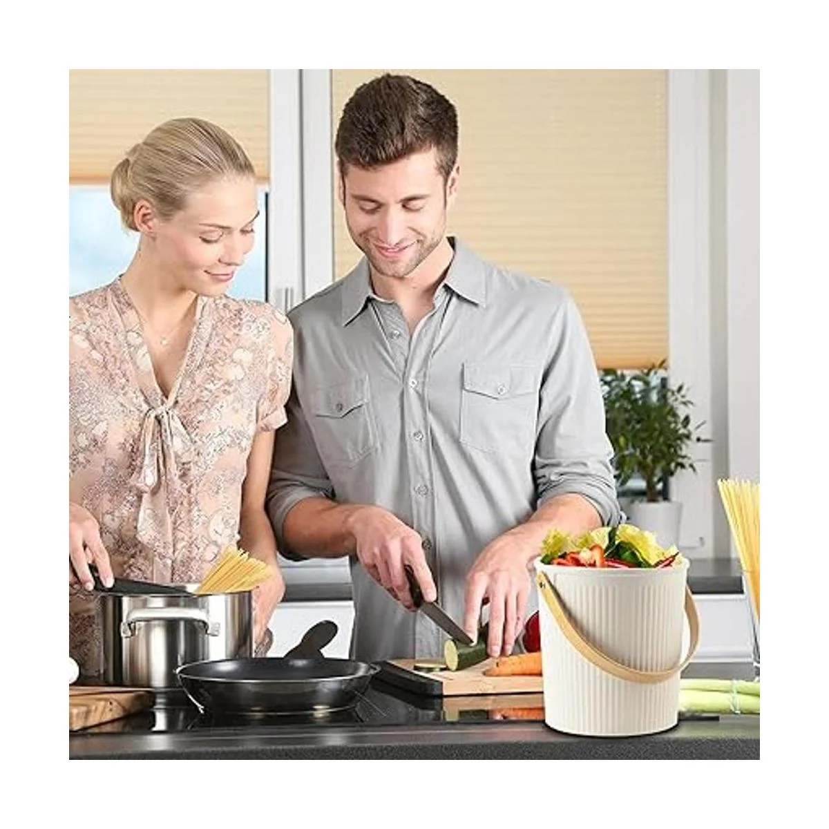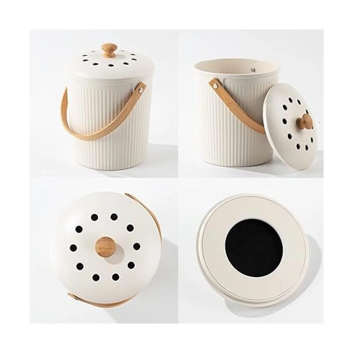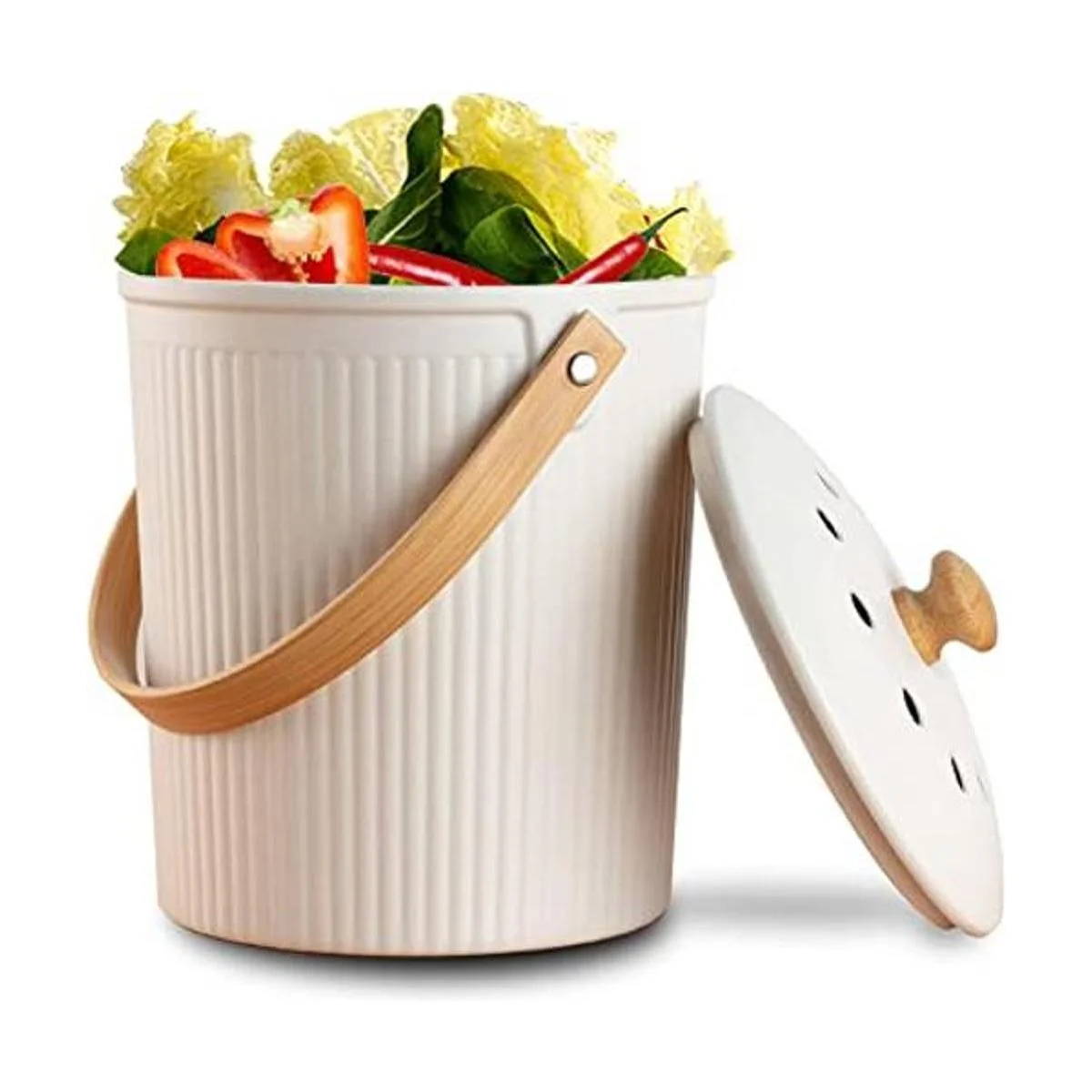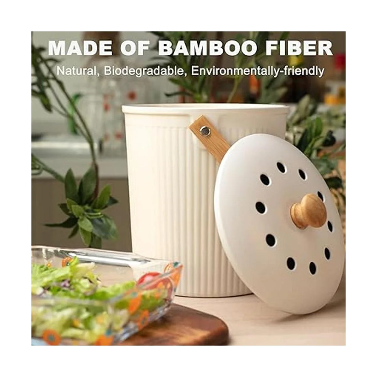 LALASTAR Contenedor de compost de cocina con tapa, hecho de fibra de bambú sostenible, cubo de compost de cocina inodoro, 1 galón, crema