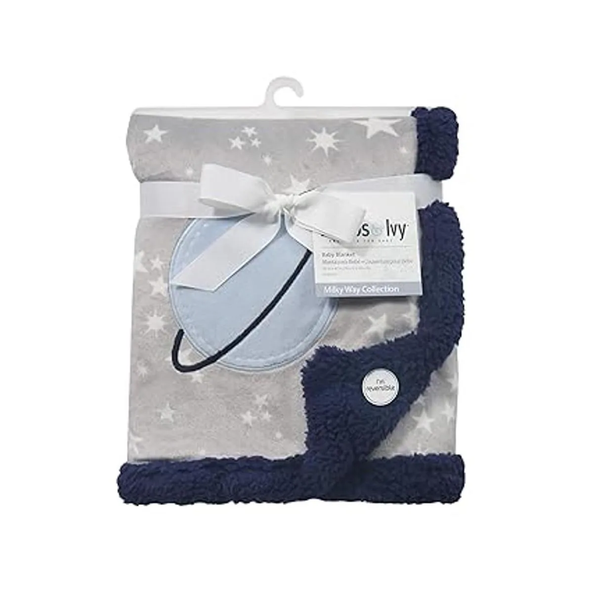 Lambs Ivy Vía Láctea GrisAzul Estrellas y Planeta MinkySherpa Suave Manta Bebé