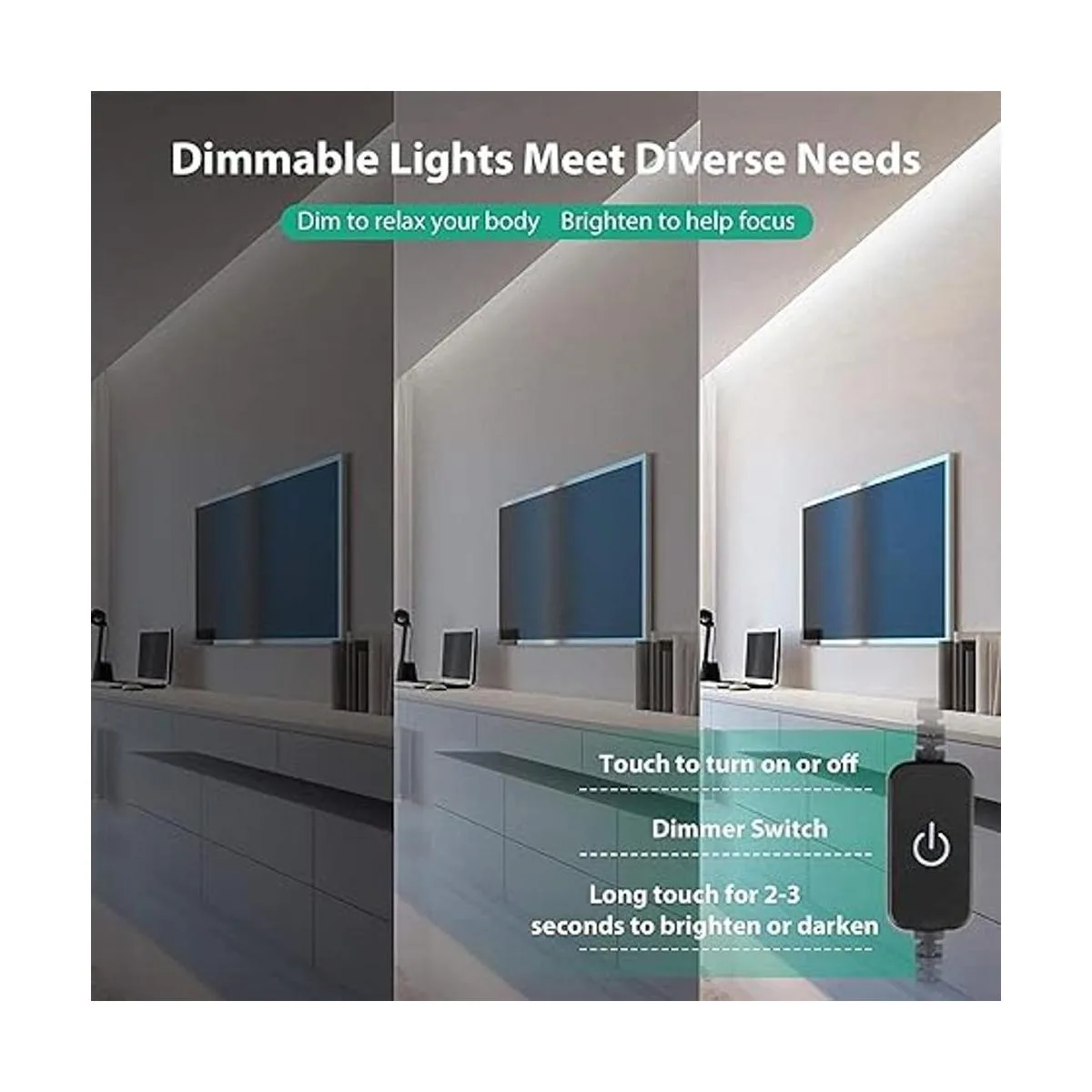 Controlador regulable táctil La tira de luz LED de diseño único viene con controlador regulable táctil actualizado, regulador de intensidad de pulsación larga para ajustar el brillo de la luz tenue a brillante, pulsa brevemente para encender/apagar. Puedes ajustar el nivel de brillo del 10 al 100 como quieras, no más pasos de reinicio remoto acosamiento manteniéndolo en uso durante mucho tiempo.