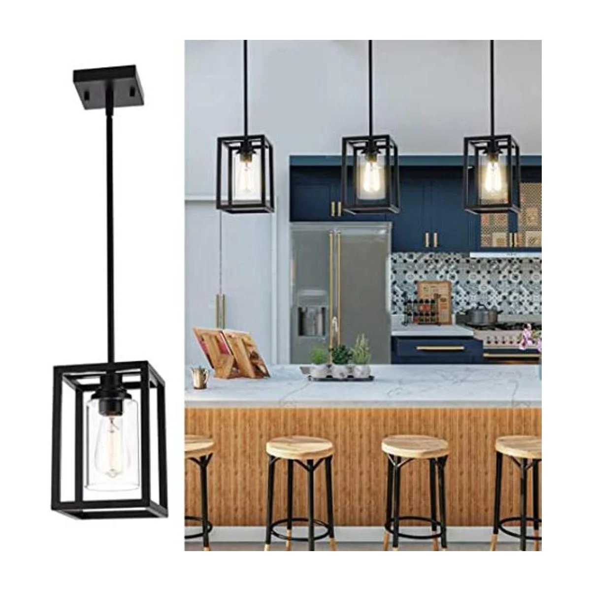 Diseño único: nuestra iluminación de isla de cocina con pantalla de vidrio transparente, diseño único para iluminar el corazón de tu cocina, comedor o lugares de estilo granja.