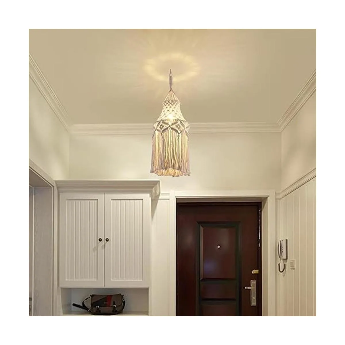 Lámpara colgante de macramé: esta hermosa pantalla de macramé está hecha a mano con cuerda de algodón natural y la luz colgante bohemia está hecha de hilo de algodón de 0.197 in para una sensación relativamente mejor. Es ideal para decoraciones o para crear un ambiente tranquilo en tu habitación