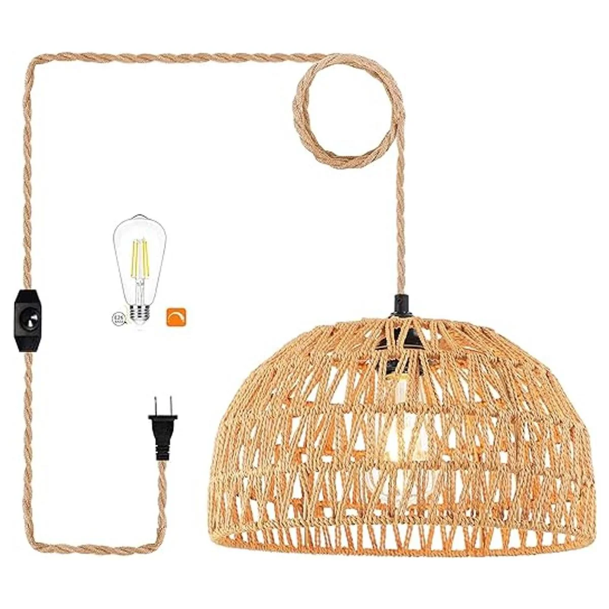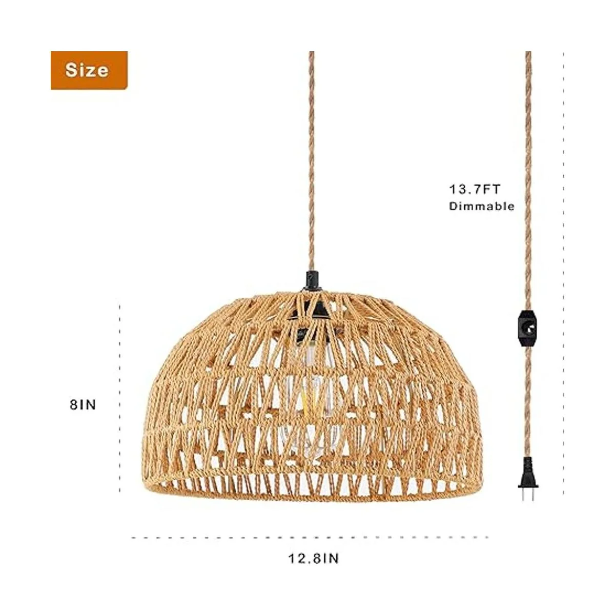 Lámpara colgante de ratán con enchufe, lámpara colgante de mimbre con cesta de bambú tejida, interruptor regulable, accesorios de techo para cocina, granja, dormitorio