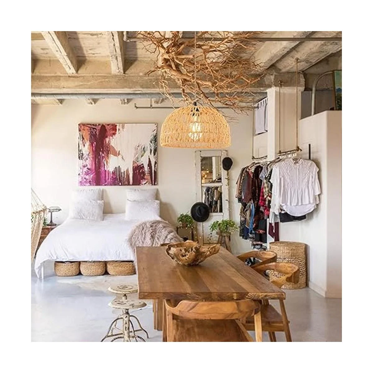 Lámpara colgante de ratán: esta es una pantalla de bambú tejida hecha a mano con hermosos detalles delicados y un hermoso exterior. Este diseño único y elegante traerá un ambiente bohemio a tu habitación y belleza tu espacio.