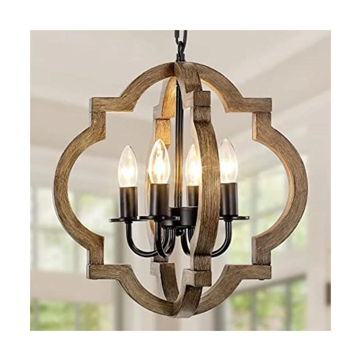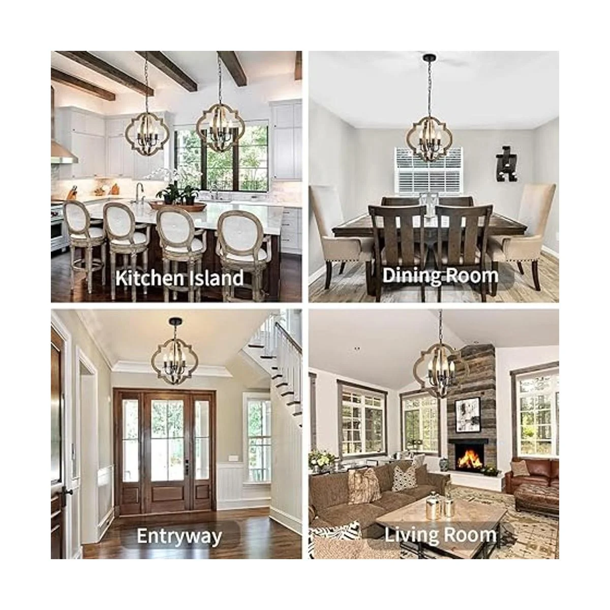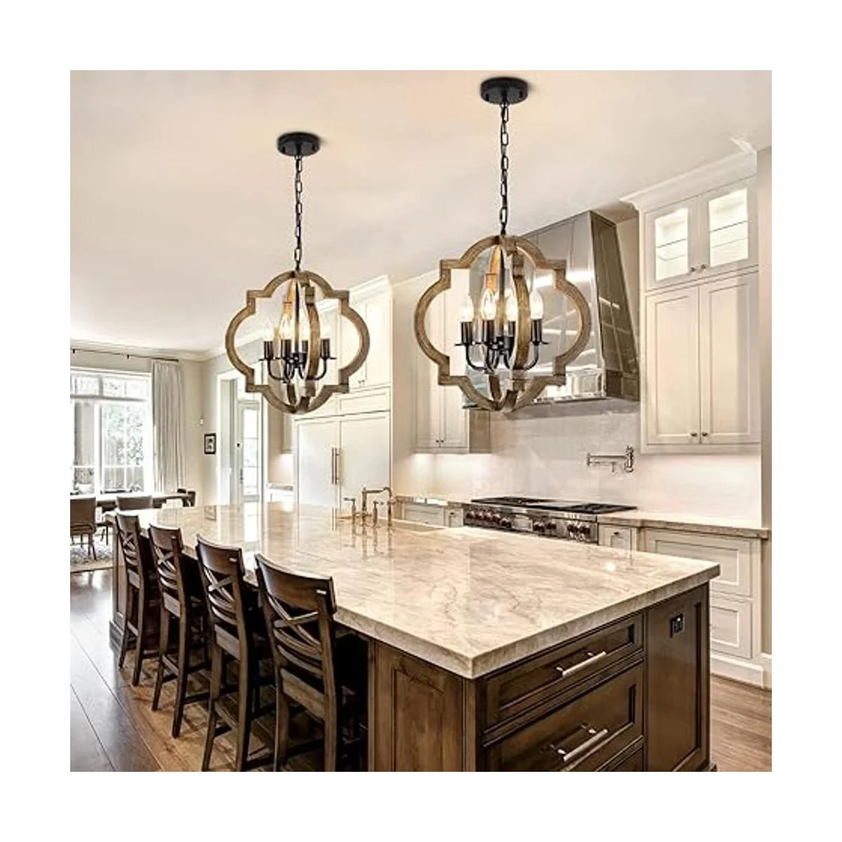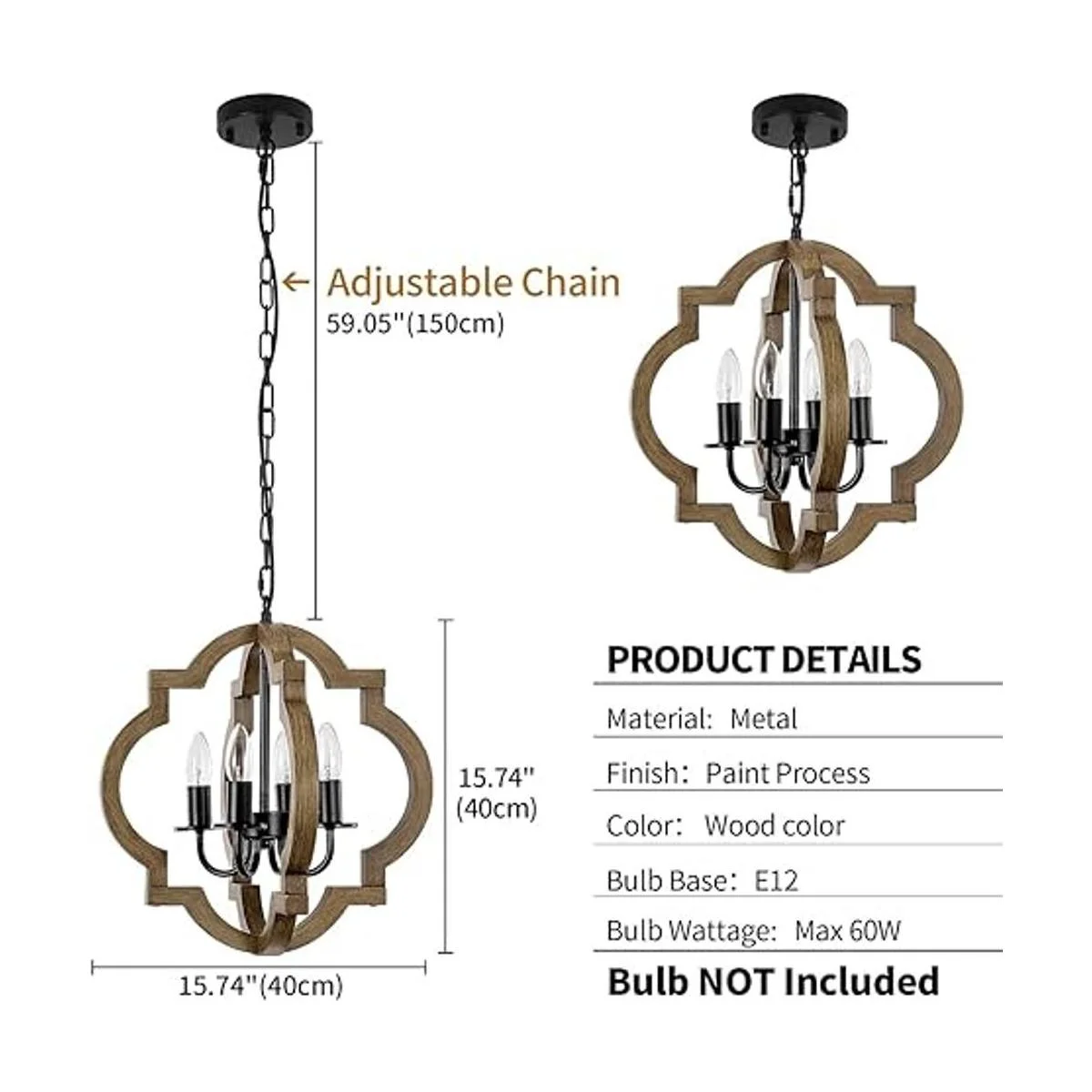 Lámpara de araña de 15.7 pulgadas, 4 luces, hecha a mano, rústica, con colgante de madera, para comedor, cocina, isla pasillo, vestíbulo, entrada, dormitorio, altura ajustable