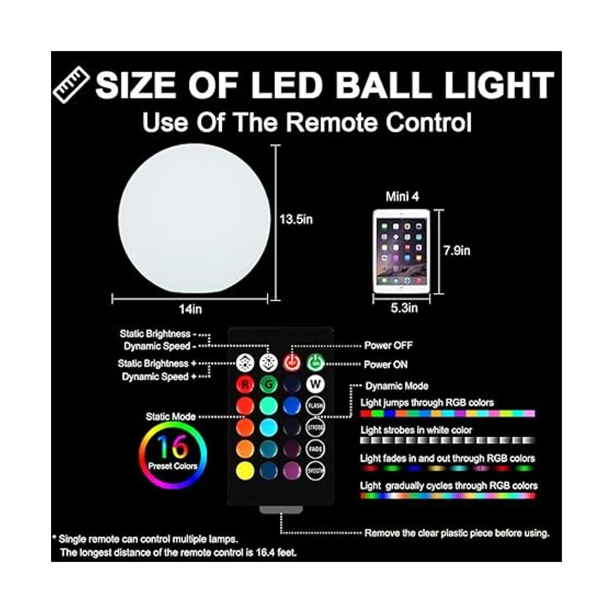 Luz RGB colorida y control remoto IR: a diferencia de otros orbes iluminados con colores apagados, nuestra luz LED de bola de color aumenta el número de cuentas a 12, haciendo que el color de la luz sea más vivo. Tiene 16 colores RGB estáticos, 4 modos dinámicos de cambio de color y 8 niveles de ajuste de brillo. Puedes utilizar el control remoto para ajustar la bola brillante al color y modo favoritos para decorar tu hogar.