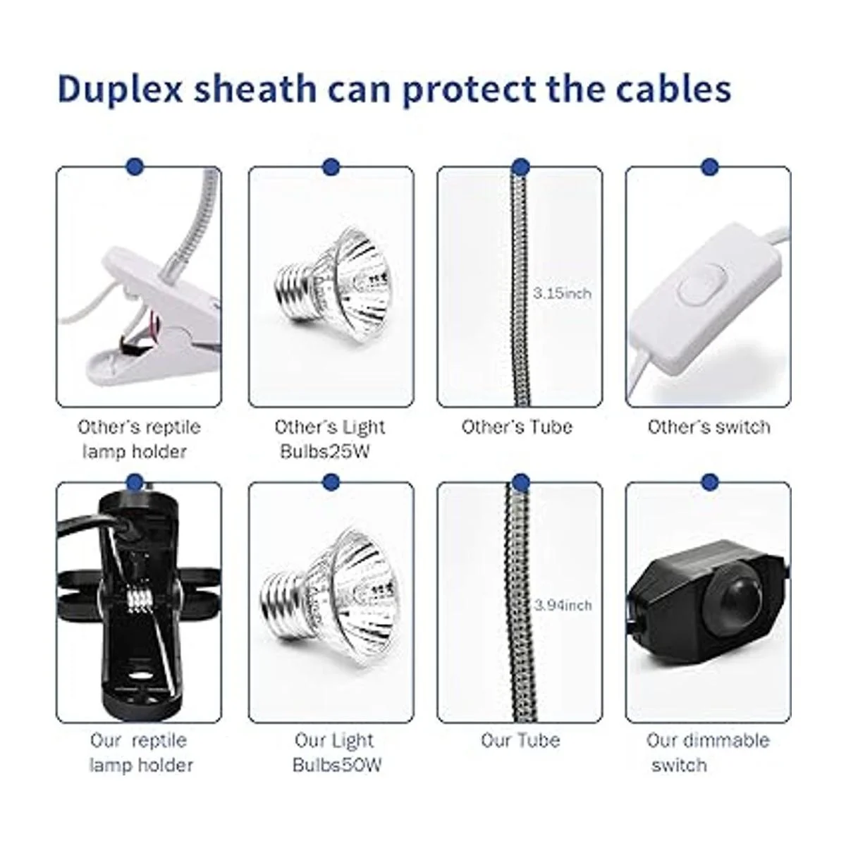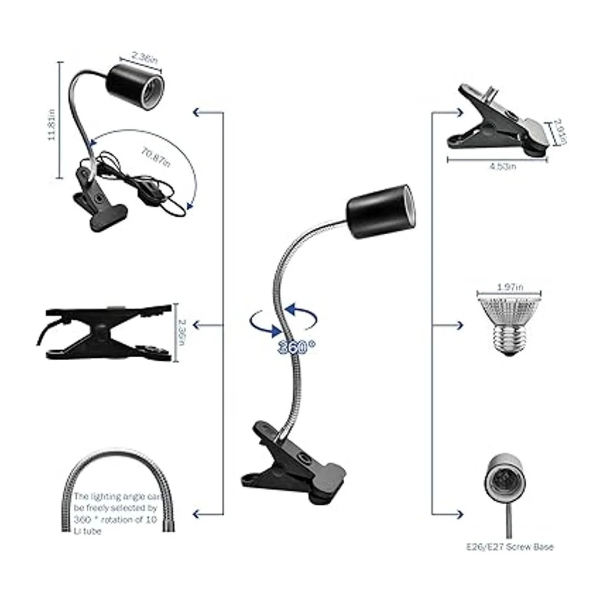 Paquete con 2 accesorios y 2 bombillas Nuestra lámpara de calor para reptiles está incluida con dos soportes de metal ajustables, que se pueden girar 360 en cualquier dirección, el enchufe de cerámica sólida puede ser bien resistente a altas temperaturas y duradero. Estos accesorios se pueden equipar con bombillas de base de tornillo E26/E27, lámparas de calor de cerámica, bombillas UVA/UVB. Lo que incluimos son dos bombillas UVAUVB E27 de 50 W. Este paquete puede estar bien satisfecho para la mayoría de tus actividades de elevación.