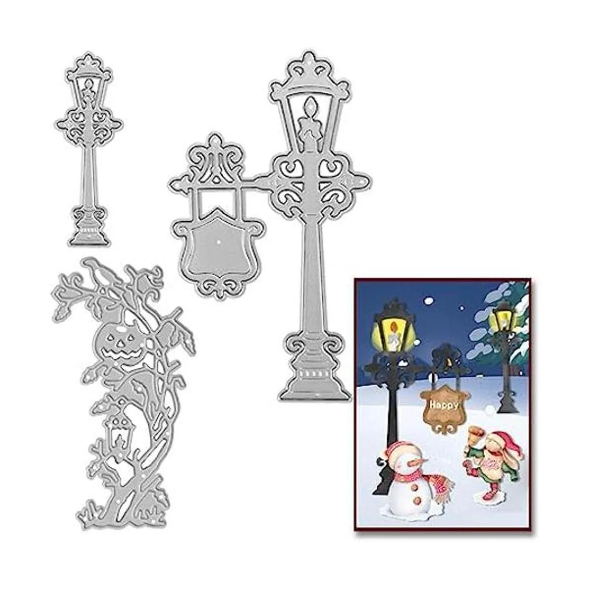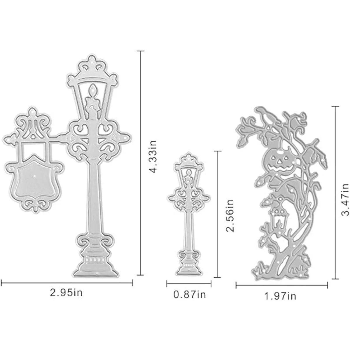 Lámpara de carretera de metal con troqueles de Navidad, troqueles de corte de árbol de calabaza, plantilla en relieve para hacer tarjetas, álbumes de recortes, papel, manualidades, álbum, decoración de Halloween