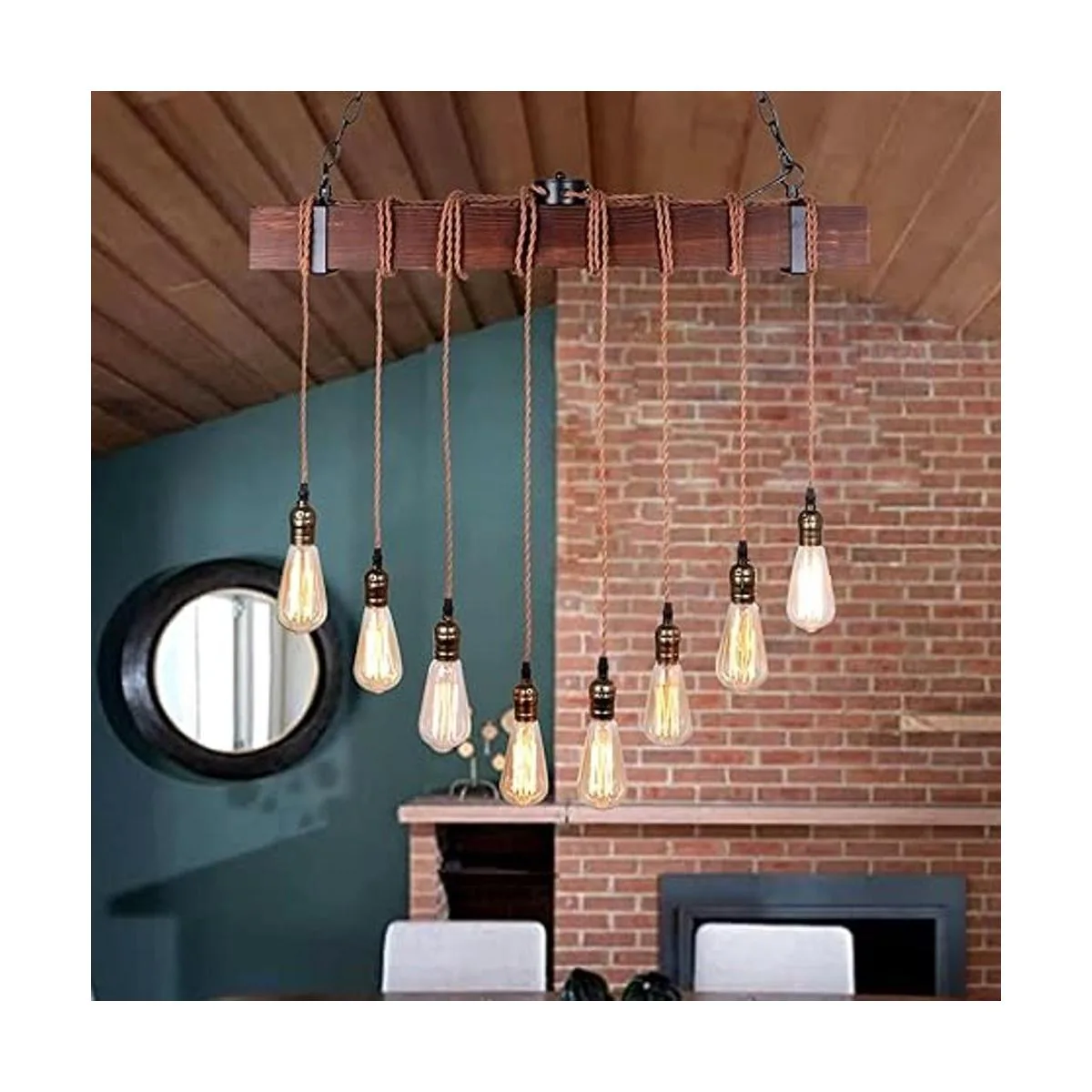 Lámpara de cocina rústica para comedor, iluminación colgante para isla de cocina con 8 luces, marca unitaria, luces colgantes de metal y madera negras