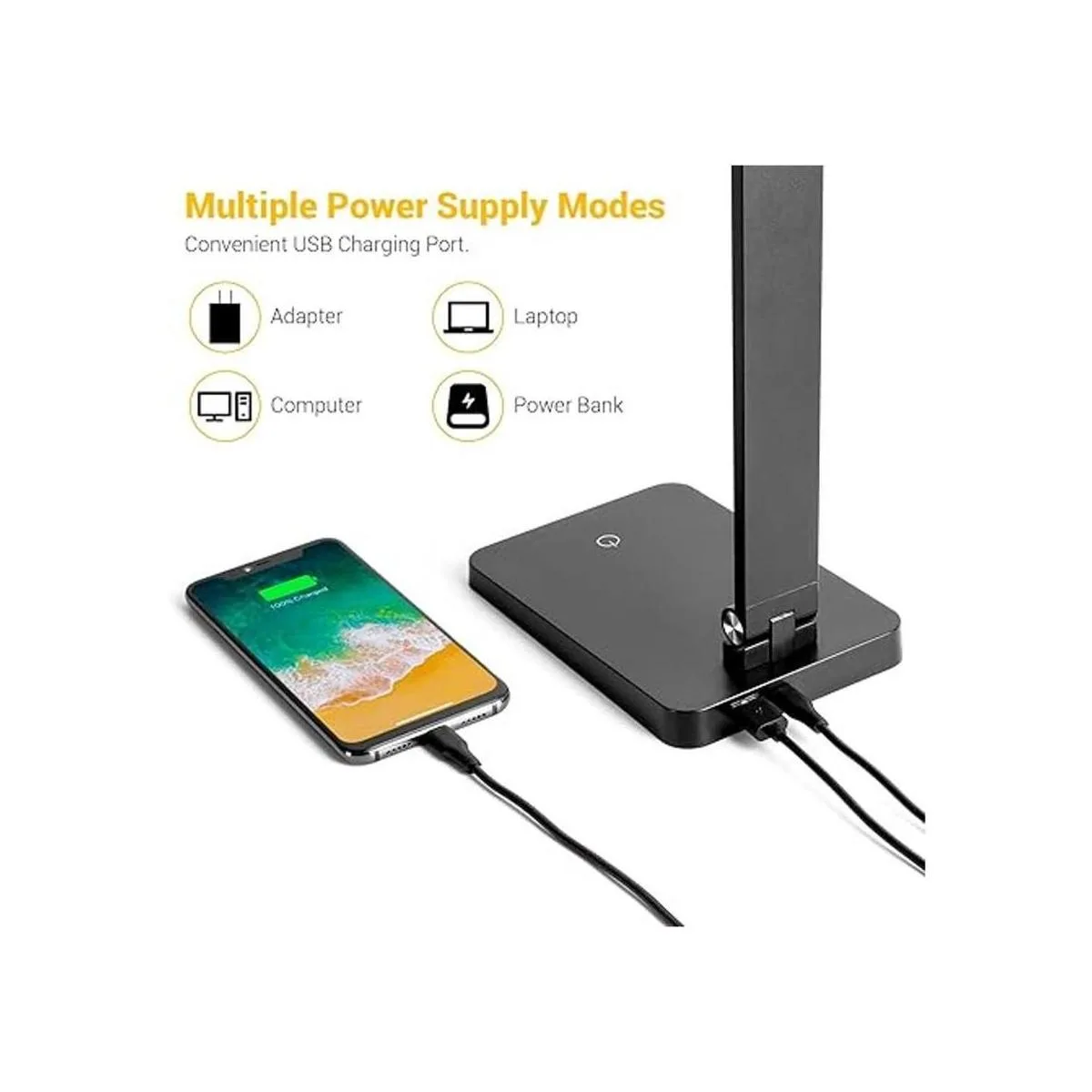 Lámpara de escritorio, lámpara de escritorio con puerto de carga USB, lámpara de escritorio para oficina en casa, lámpara de escritorio LED regulable, luz de escritorio de 3 brillo, lámpara de oficina con control táctil, lámpara de estudio, lámpara de escritorio para dormitorio, lámpara de mesa, color negro
