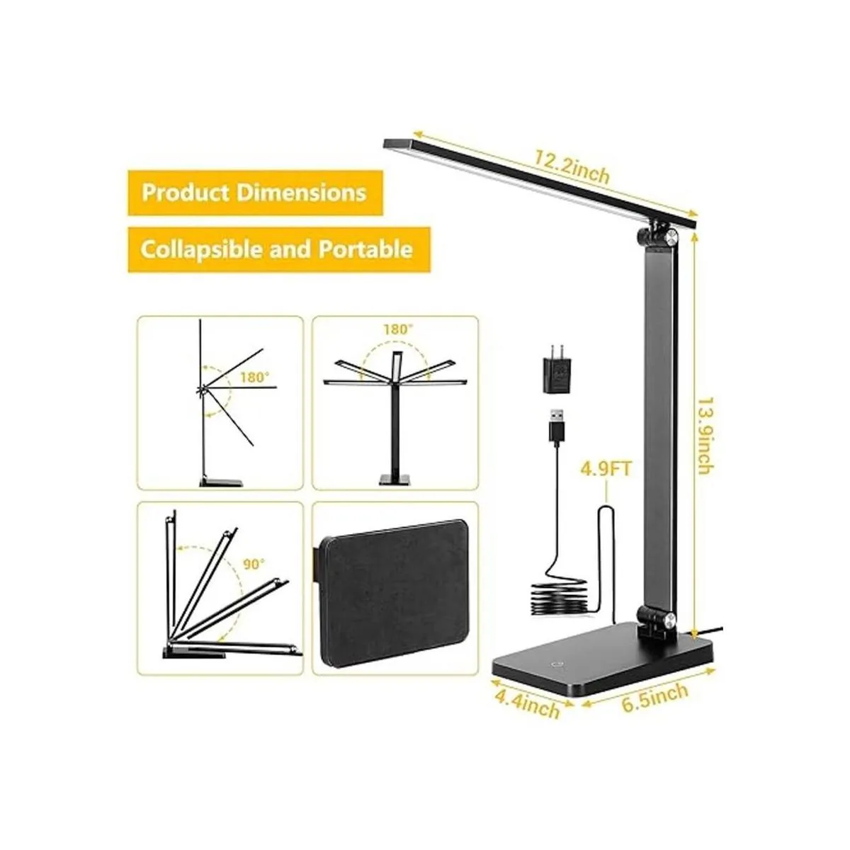 ngulo ajustable y diseño plegable: lámpara de escritorio plegable con brazo ajustable de 180 y base de eje giratorio de 90 para una iluminación más flexible, brazo de lámpara plegable y base de tamaño pequeño para ahorrar espacio. Fácil de colocar en estantes, bolsos, maletas y caja.