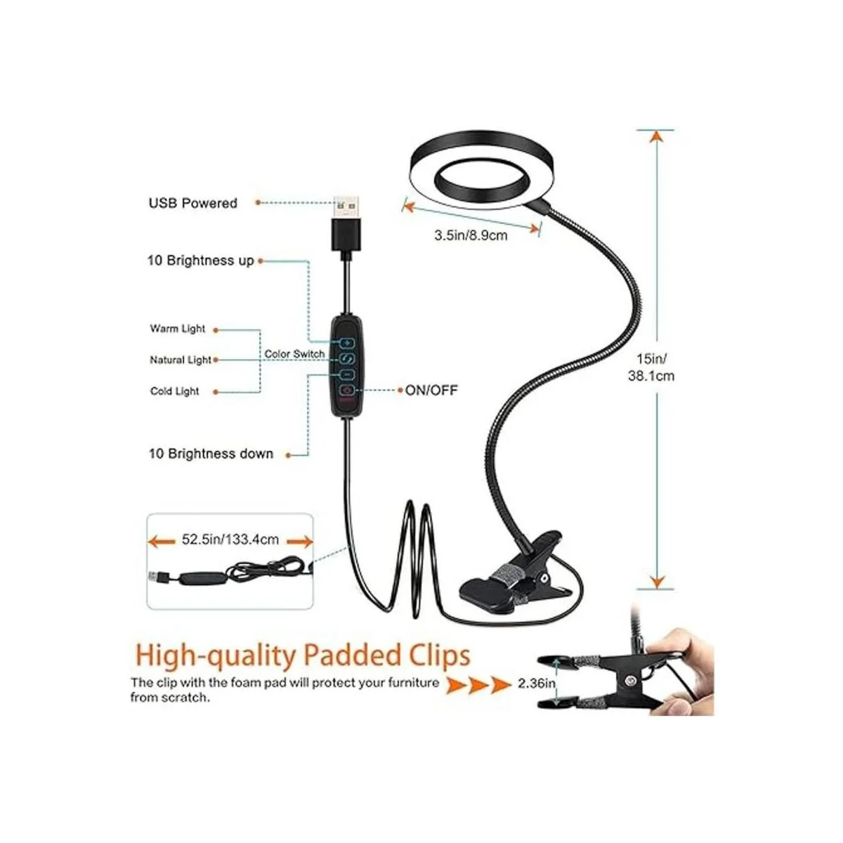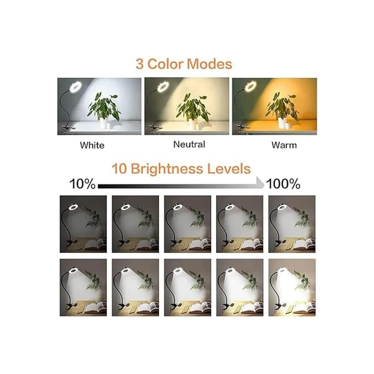 3 modos de luz y 10 niveles de brillo regulable: la lámpara de clip ofrece luz fría, luz cálida, luz natural y 10 niveles de brillo 10100 para cada modo de iluminación. La lámpara LED de clip proporciona sin parpadeo, sin reflejos, sin rayos ultravioleta, sin radiación de frecuencia, luz amigable con los ojos para proteger nuestro ojo de daños; ideal para videollamadas, oficina en casa, estudio de niños, pintura de pasatiempos, iluminación de pantalla de computadora, máquina de coser y espacio de trabajo, etc