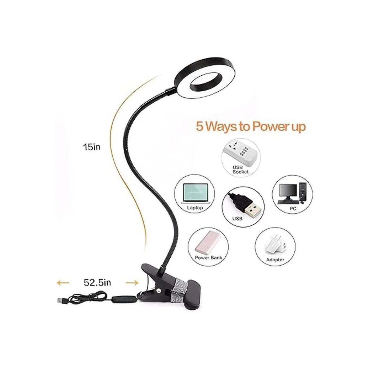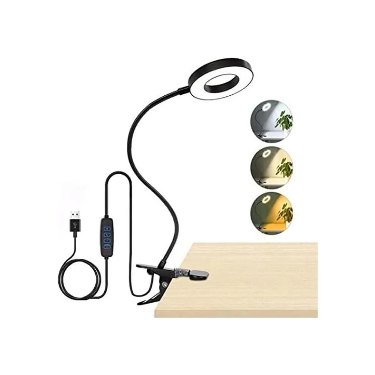 Lámpara de estudio de libro de lectura LED con clip, 3 modos de color, 10 brillo, protección ocular de 360 flexible cuello de cisne para estudiantes, dormitorio universitario, lámpara de escritorio de oficina por la noche en la cama