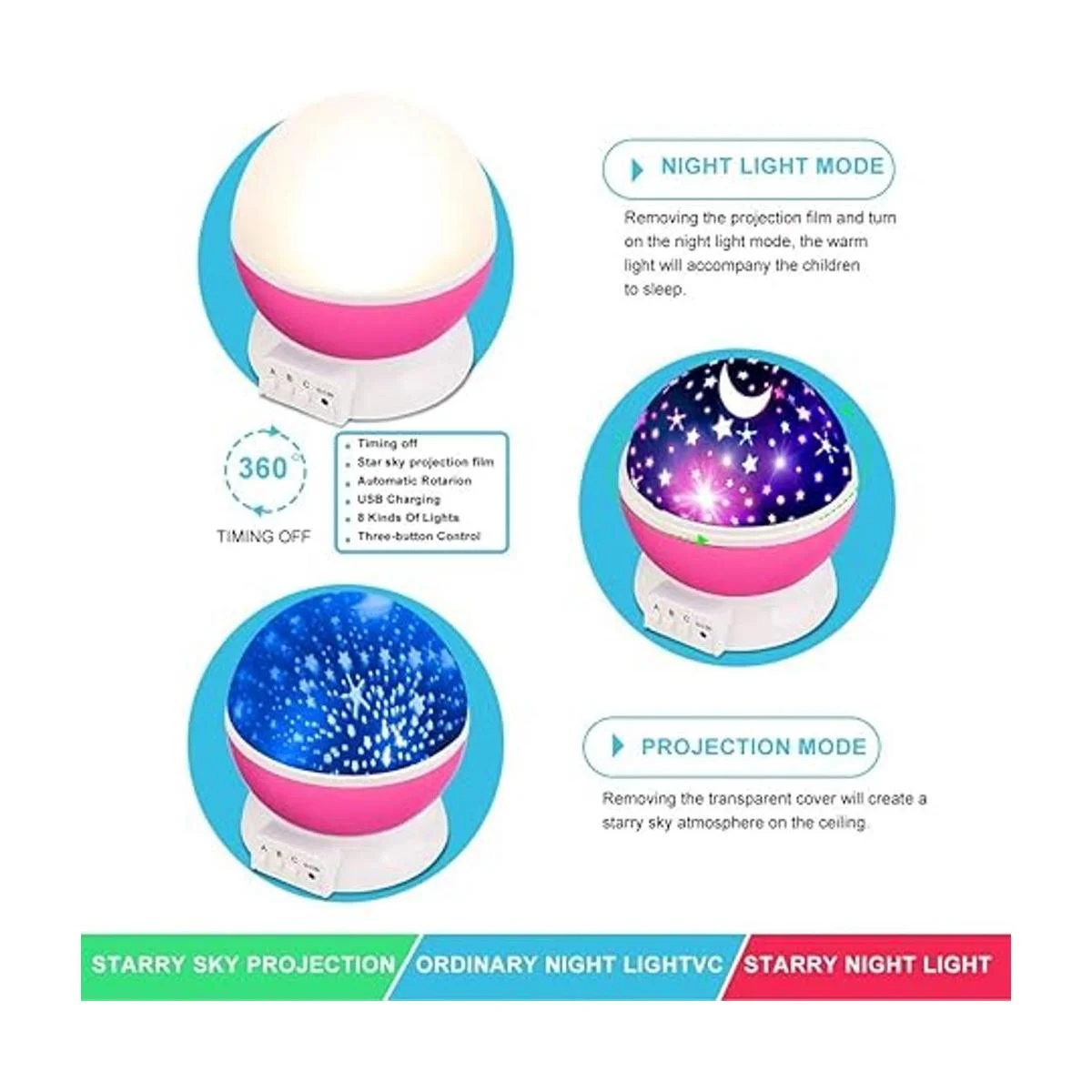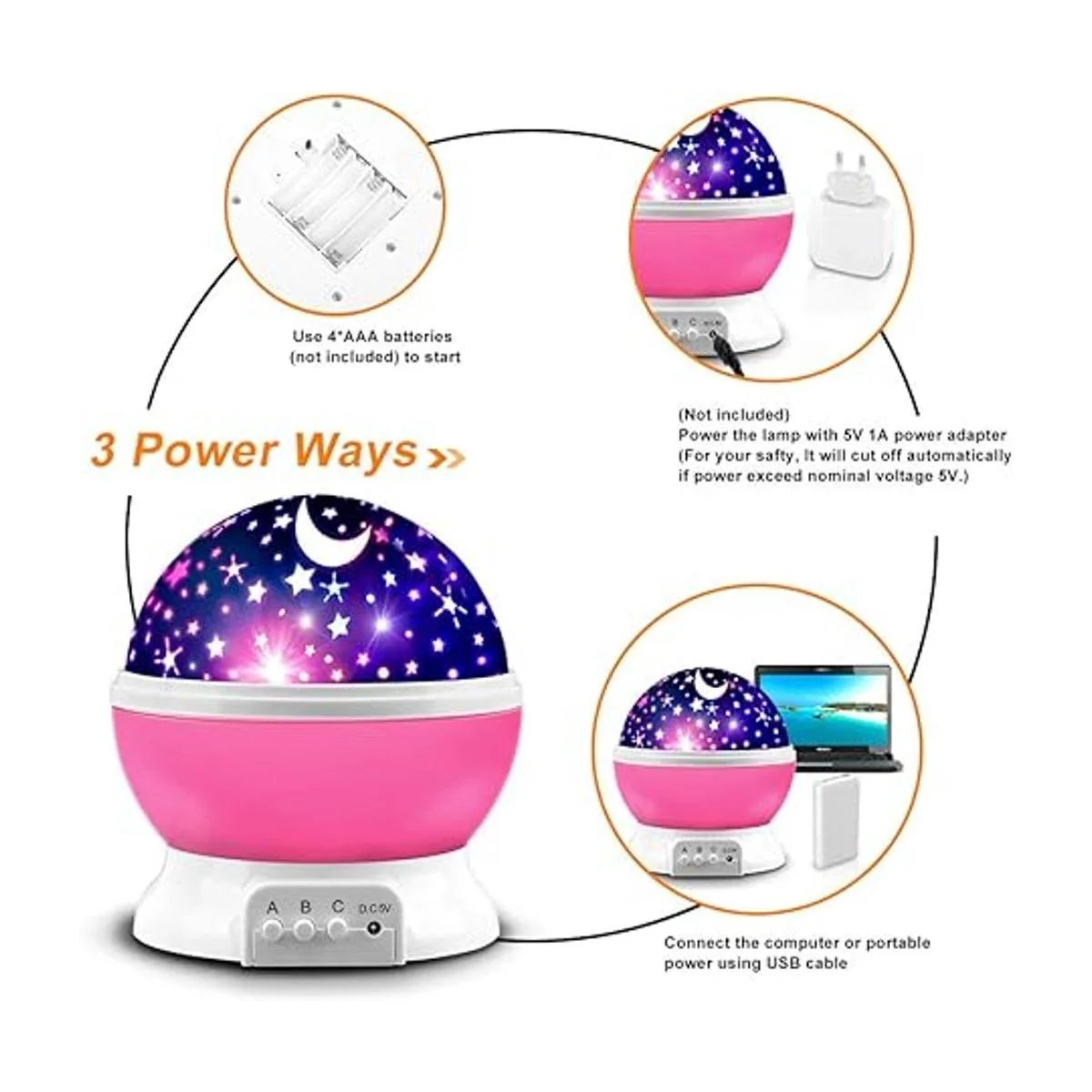 Lámpara de iluminación nocturna 4 cuentas LED, 3 modelos, cable USB de 4.9 pies, romántica rotación proyector Cosmos Estrella Cielo Luna, rotación nocturna para niños dormitorio