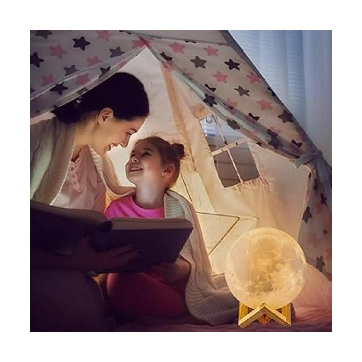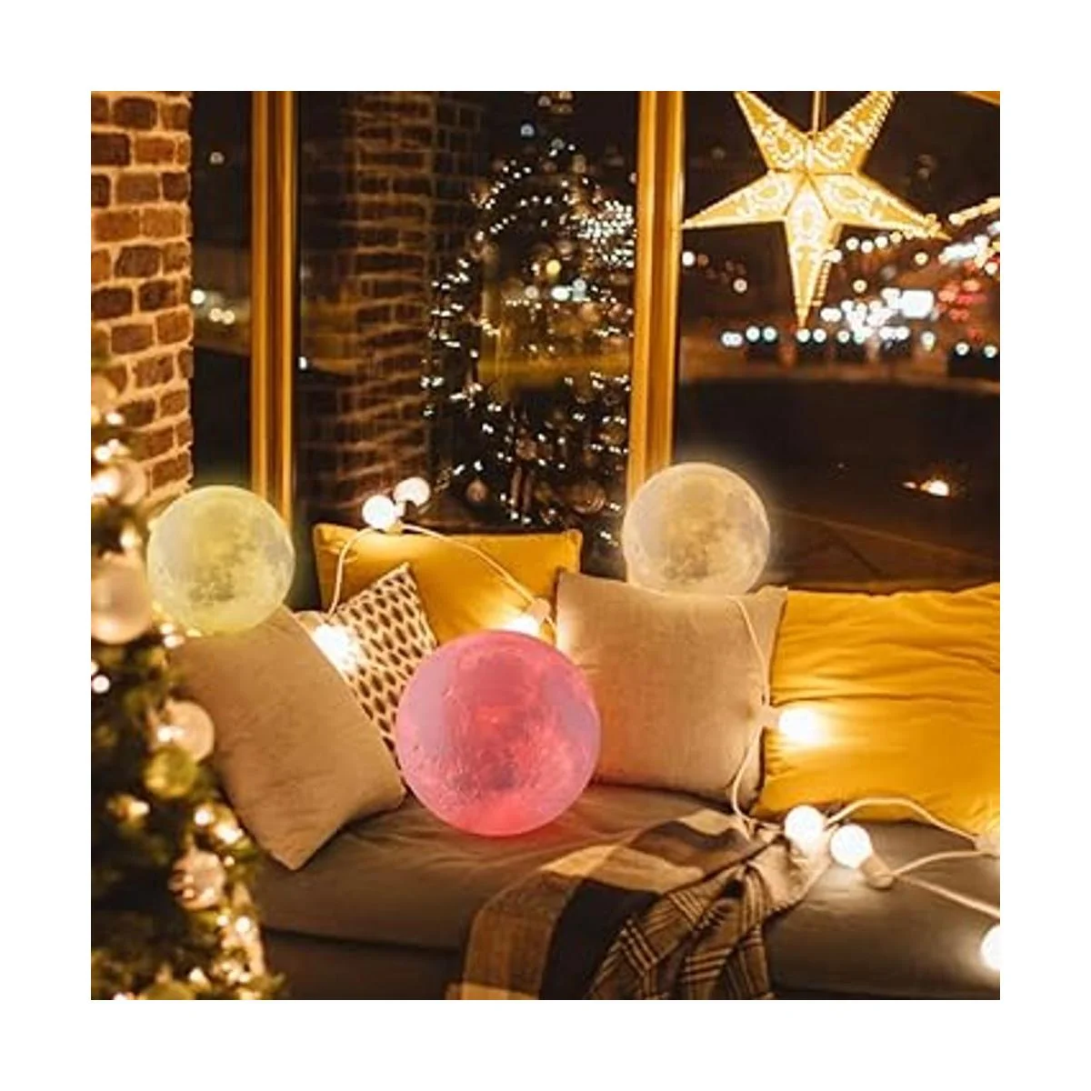 Lámpara de luna hecha de ácido poliláctico, ecológica, no tóxica, y duradera y no es fácil de romper. Características clave del producto: