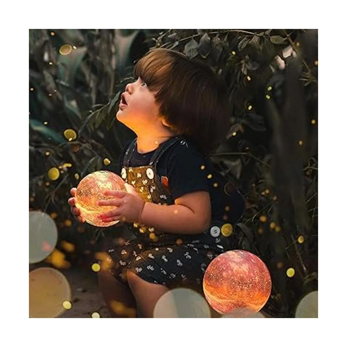 Lámpara de luna galaxia LOGROTATE Moon Night Light con tecnología de impresión 3D, la superficie de la lámpara está muy cerca de la luna; el dibujo de galaxia de color hace que la pelota sea colorida y hermosa mientras se ilumina, como la estrellada, estimula la imaginación y la creatividad de los niños, muy novedosa y encantadora;