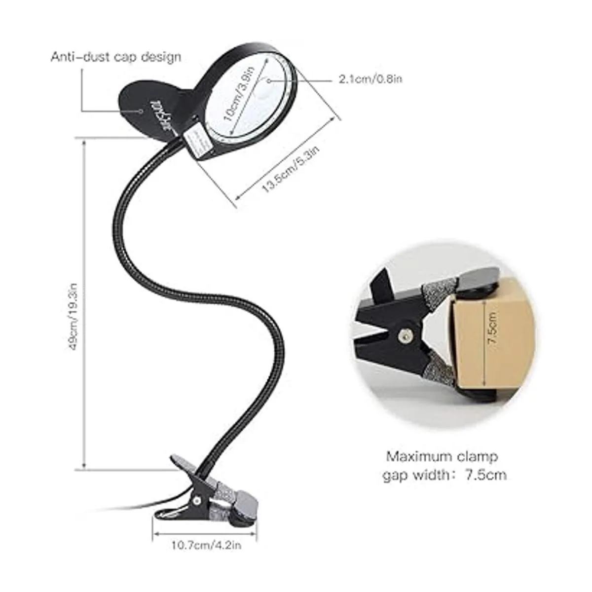 Tomshine QQ51313022 Aumento 3X y 5X y brillo ajustable El aumento 3X y 5X hace que incluso objetos pequeños que son difíciles de ver claramente. La lupa Tomshine tiene 38 luces LED SMD3528 de alto brillo, el brillo se puede ajustar entre el 10 y el 100 según sea necesario. El aumento se combina con la luz para una gran mejora en la visión.