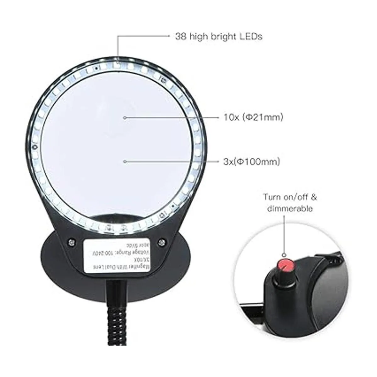 Lámpara de lupa 3X 10X, lámpara de aumento LED regulable sin niveles con anillo de pene, consoladores, juguetes sexuales, anillos para muñecas sexuales, luz y soporte para manualidades, lectura, banco de trabajo, 10 unidades