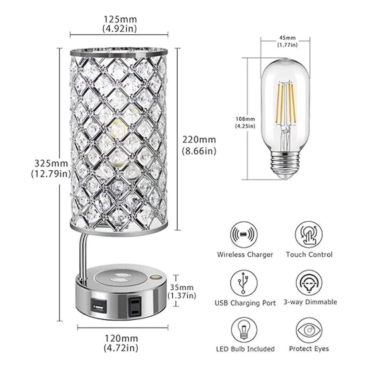 Lámpara de mesa de cristal con control táctil, lámpara de mesa de carga inalámbrica regulable de 3 vías, luz de noche USB con pantalla de cristal, lámparas modernas para mesita de noche para dormitorio, sala de estar bombilla incluida