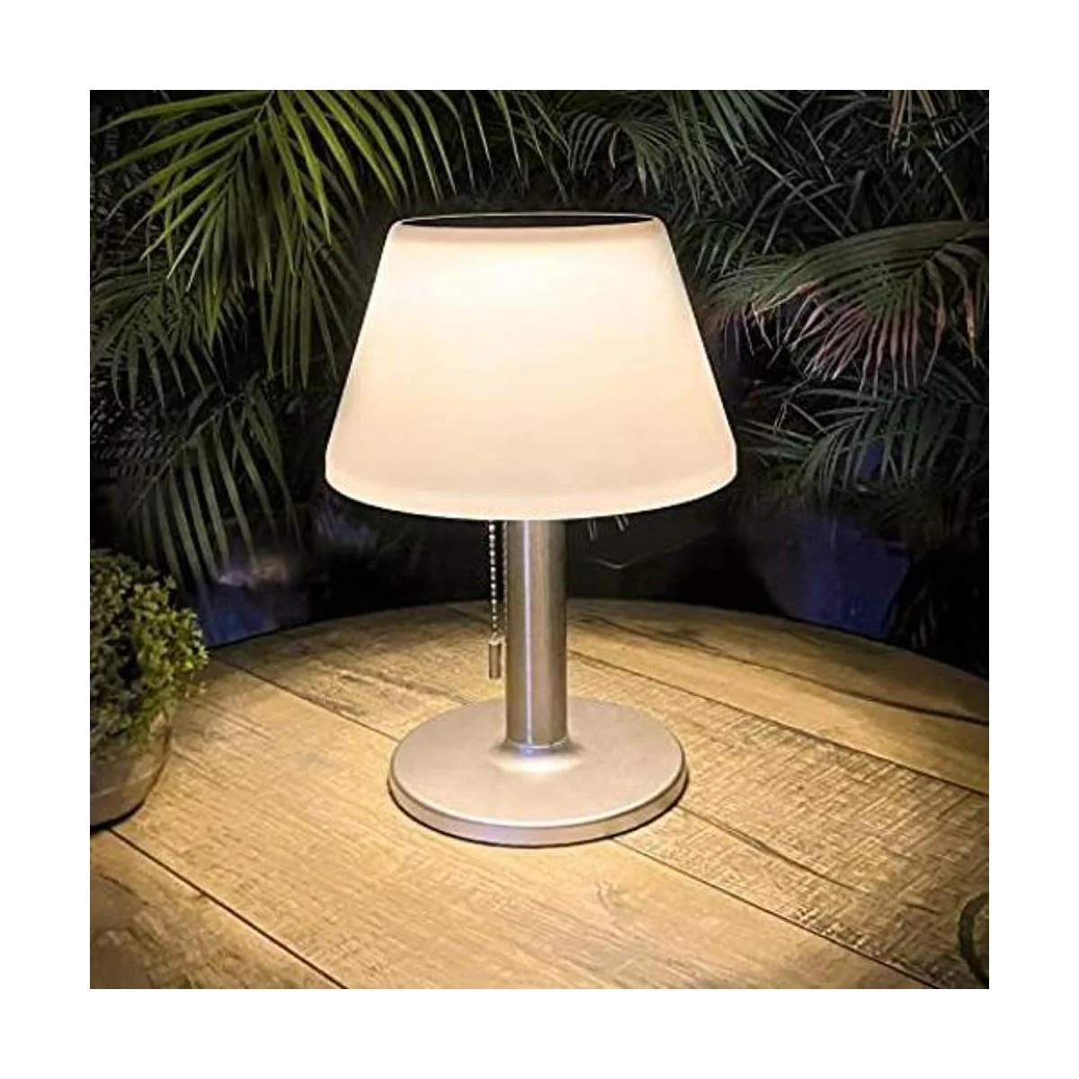 Lámpara de mesa solar para interiores y exteriores, 3 modos de iluminación, LED para el cuidado de los ojos, impermeable, lámpara de escritorio solar inalámbrica con cadena de tracción para exteriores, patio, jardín, dormitorio, sala de estar decoración moderna blanca