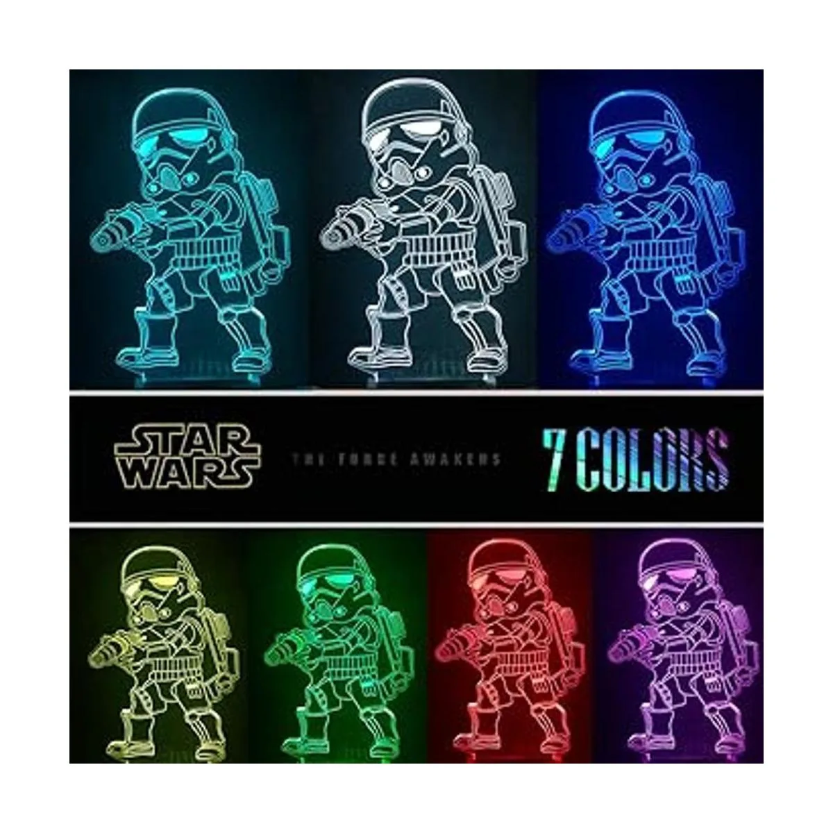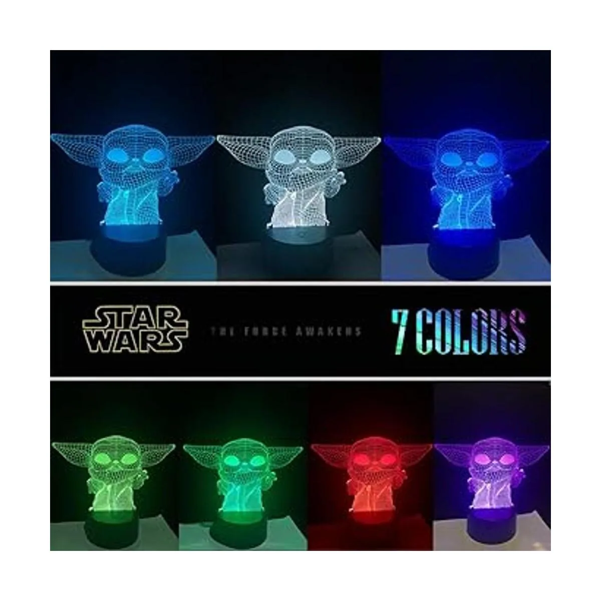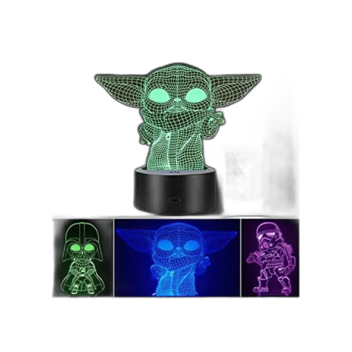 16 colores diferentes y 3 patrones: Baby Yoda/Darth Vader / Stormtrooper Esta luz regulable 3D se puede cambiar entre 16 colores con mando a distancia, 7 colores con botón físico en la base; puedes elegir tus Star Wars favoritos y colores favoritos para dormirse.