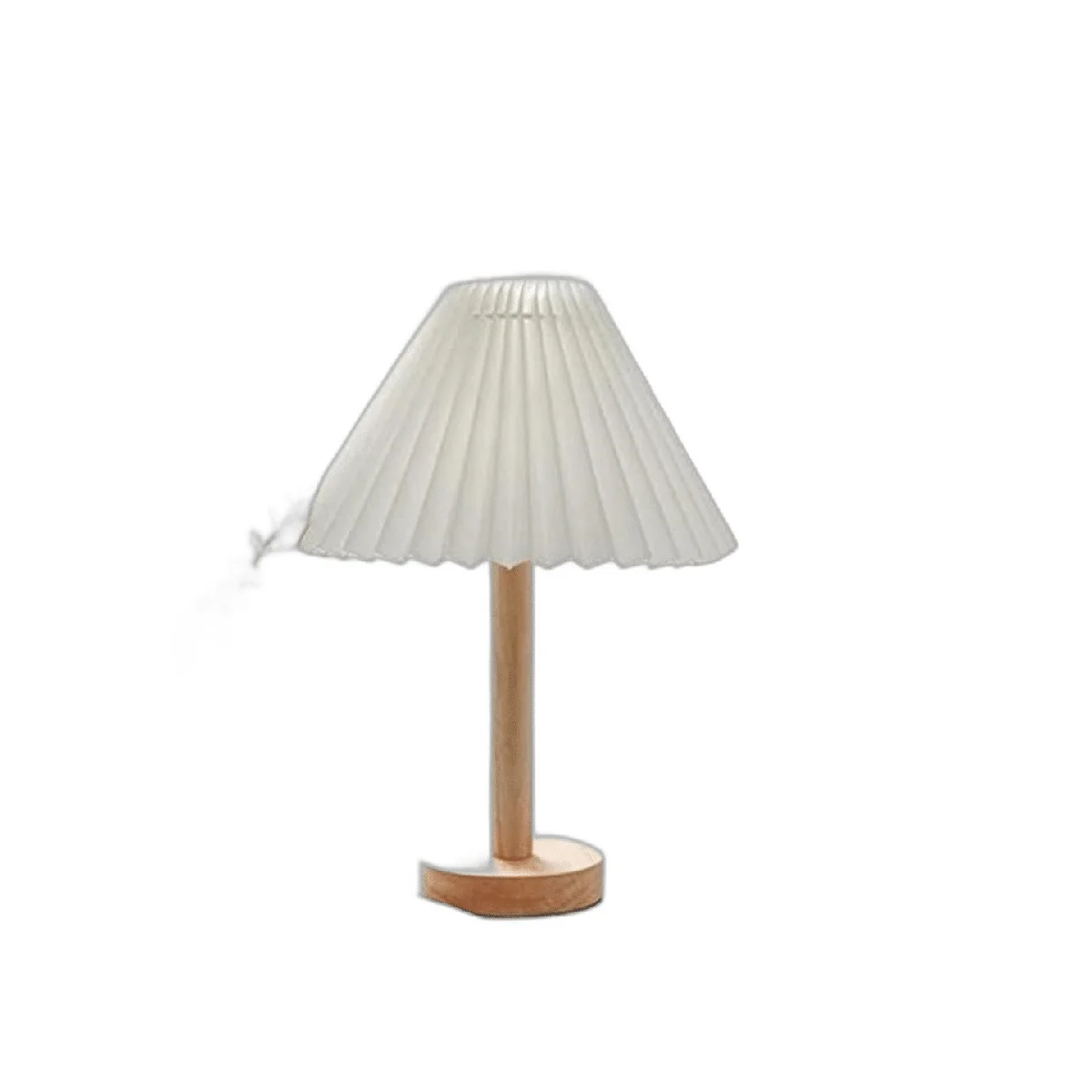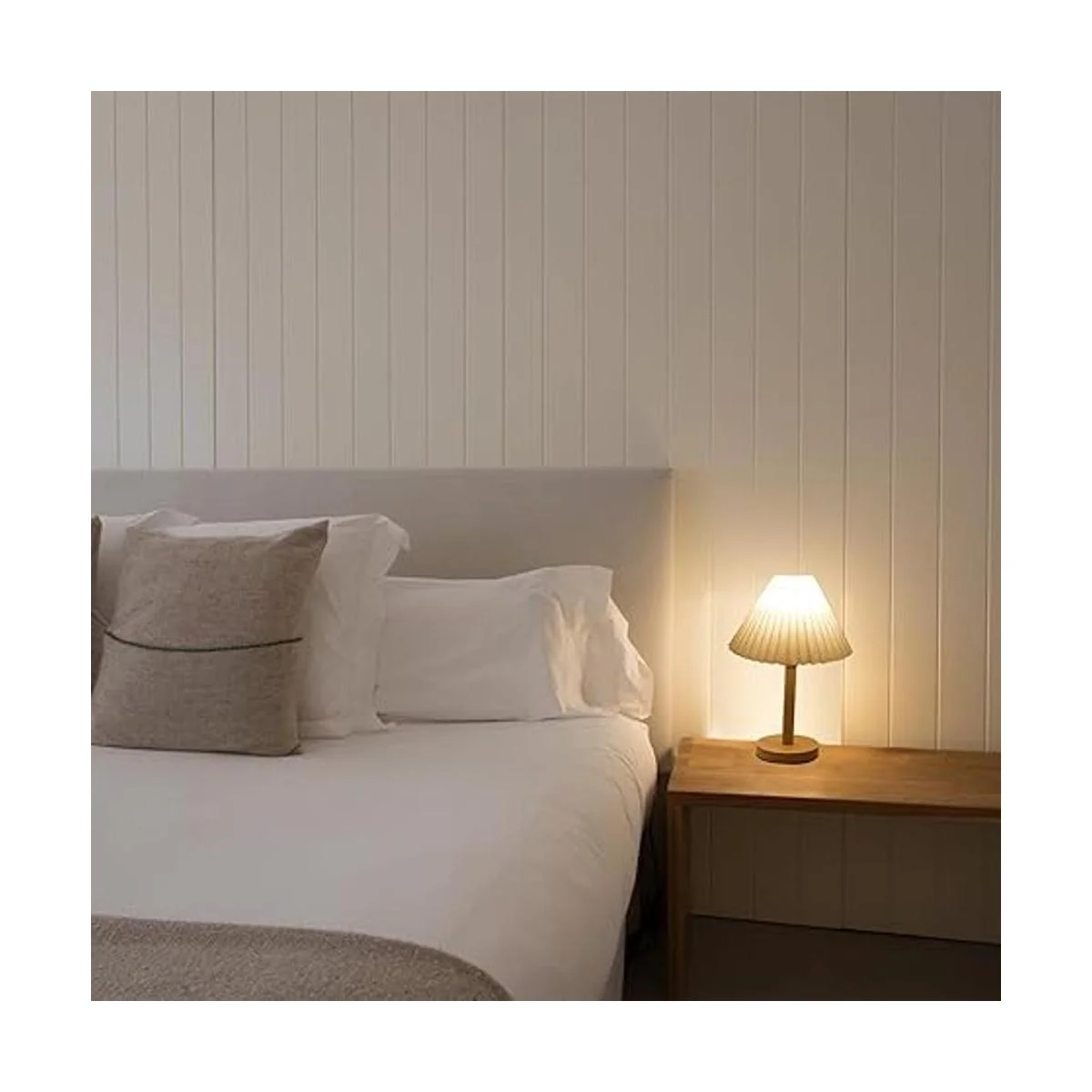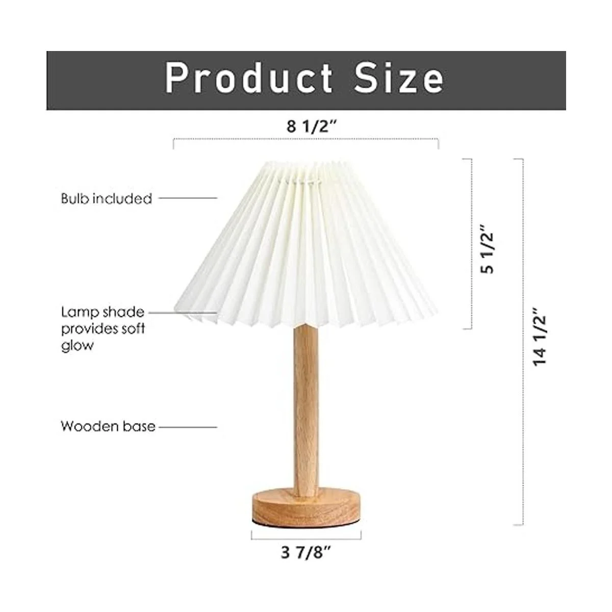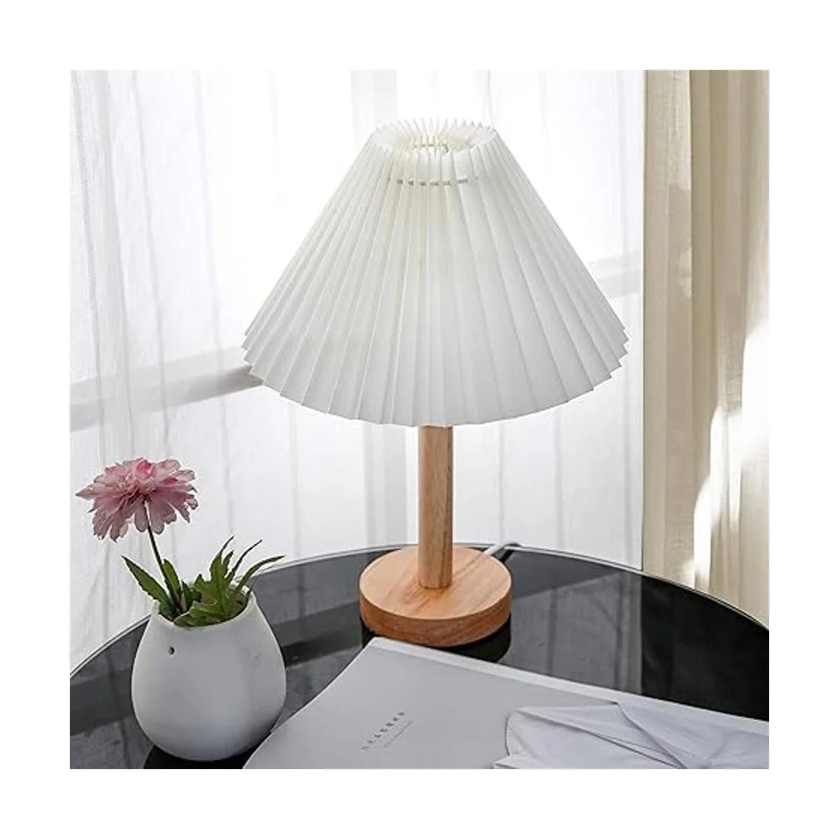 Lámpara de noche, pantalla blanca plisada, lámpara estética de mesita de noche, base de madera para habitación de invitados, dormitorio, sala de estar, bombilla LED blanca cálida incluida
