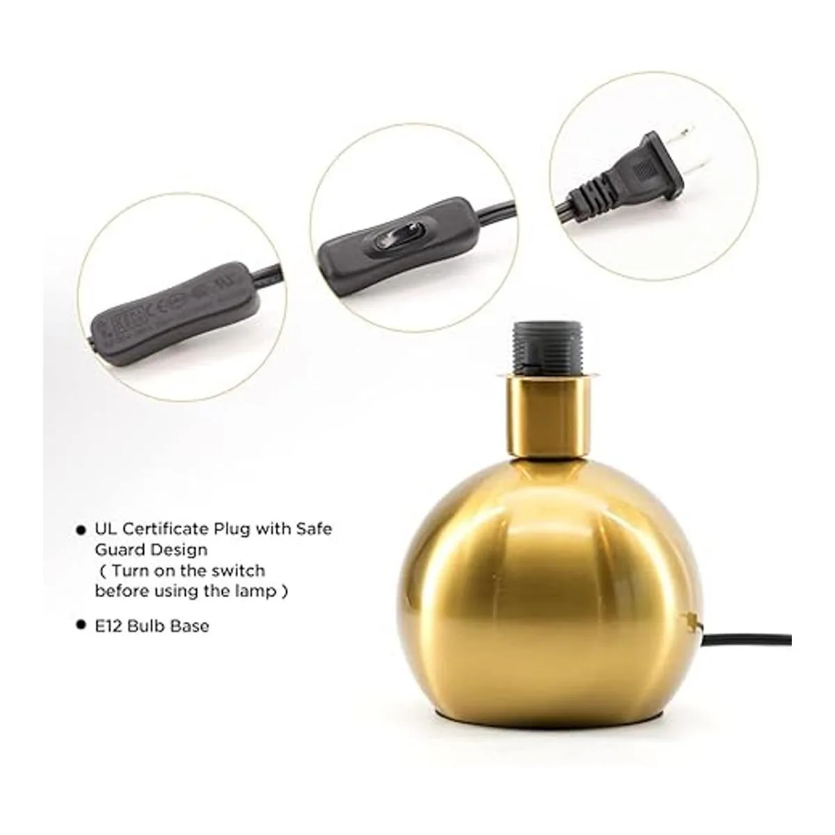 Lámpara de mesa de latón dorado: voltaje de 110 V a 125 V. Bombillas E12 de 5 W 3000 K. El rango de potencia máxima recomendado de la lámpara es de 40 W. Las bonitas lámparas para dormitorio con base de metal dorado, la pantalla de tela evita que la luz directa llegue a los ojos, y la mini luz nocturna brilla en el techo.