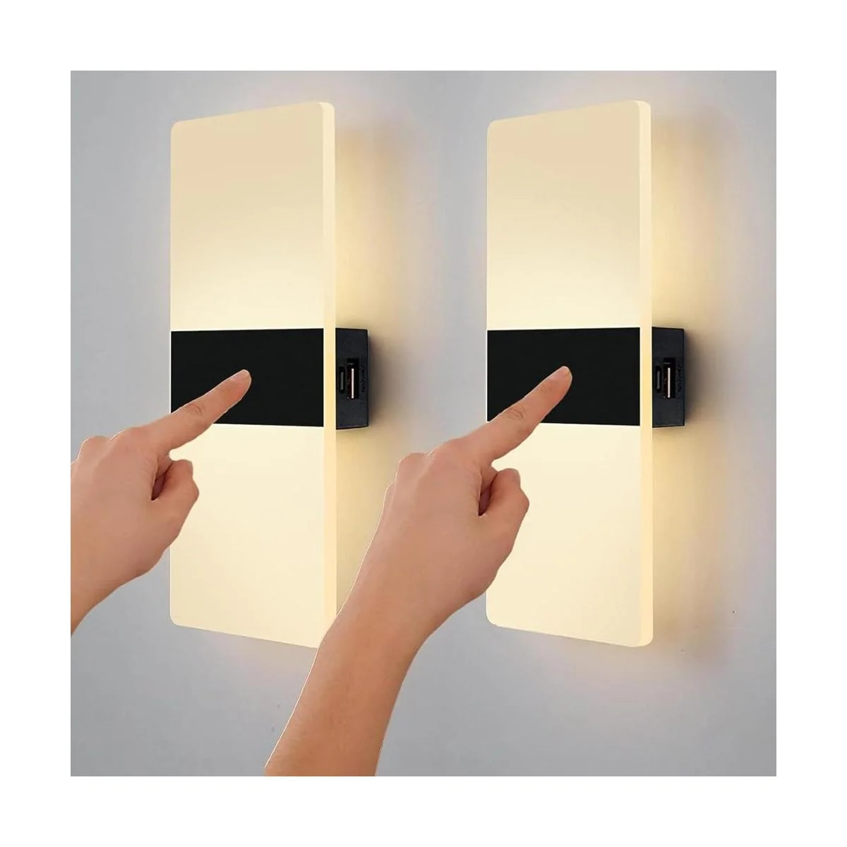 Lámpara de pared acrílica con interruptor táctil, recargable por USB, lámpara de pared LED de atracción magnética, lámpara de noche portátil con control táctil para interiores, 2 unidades, color blanco cálido