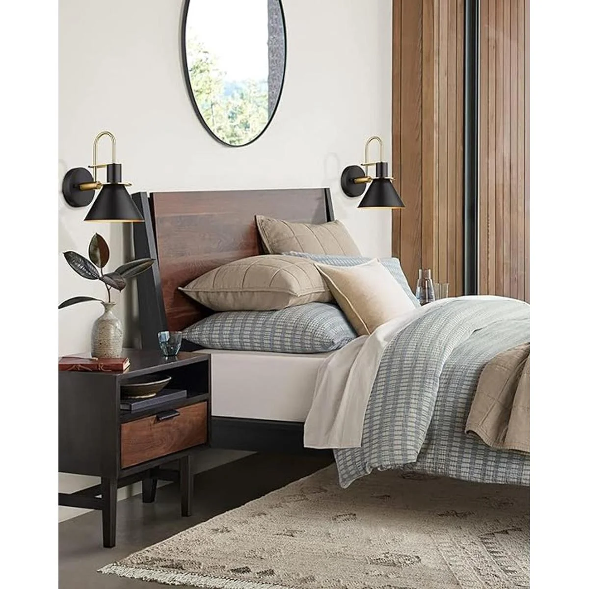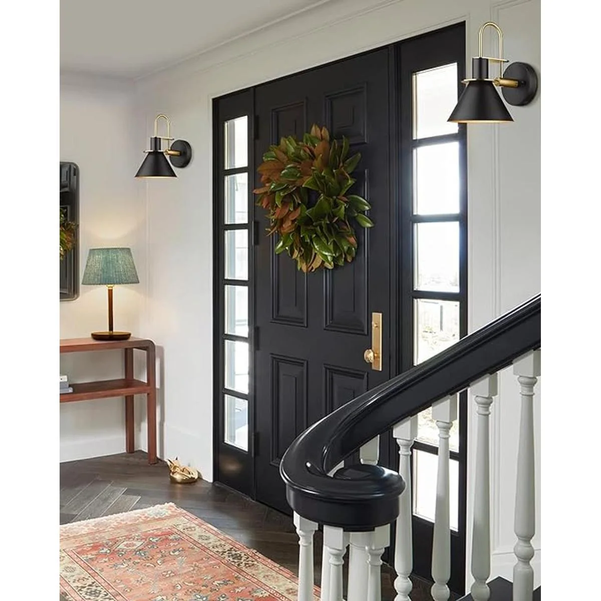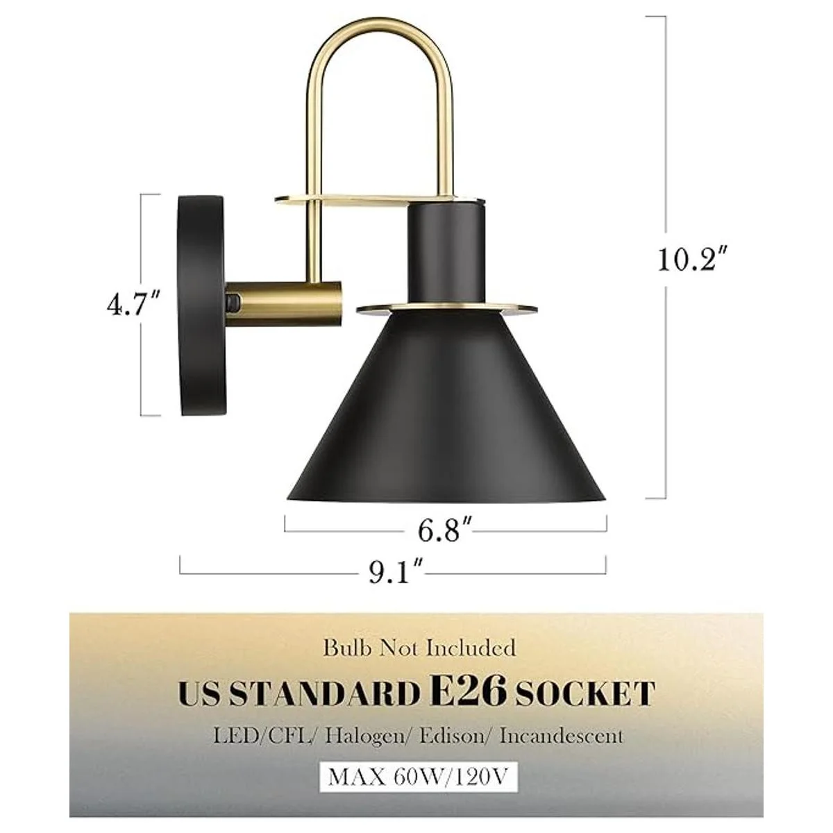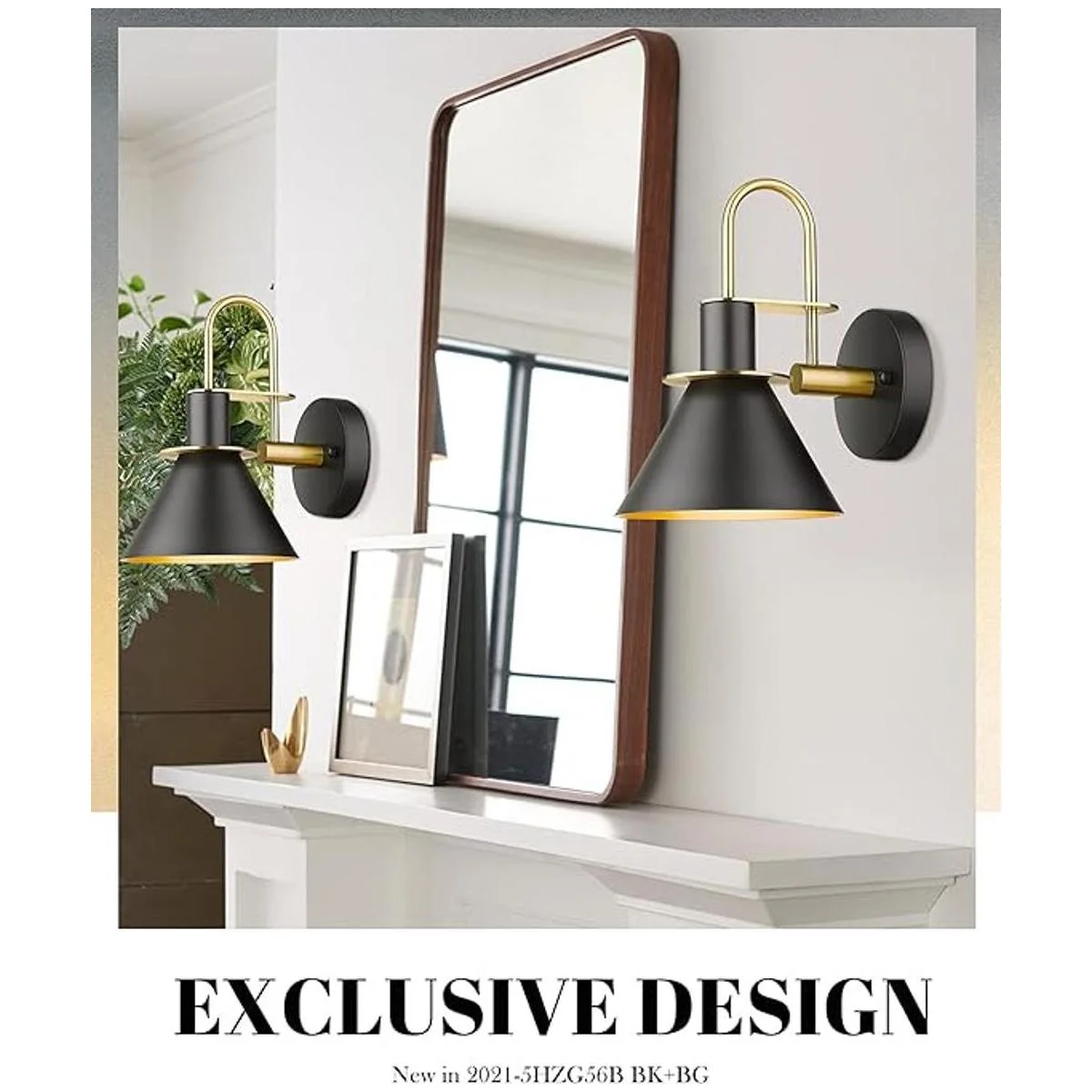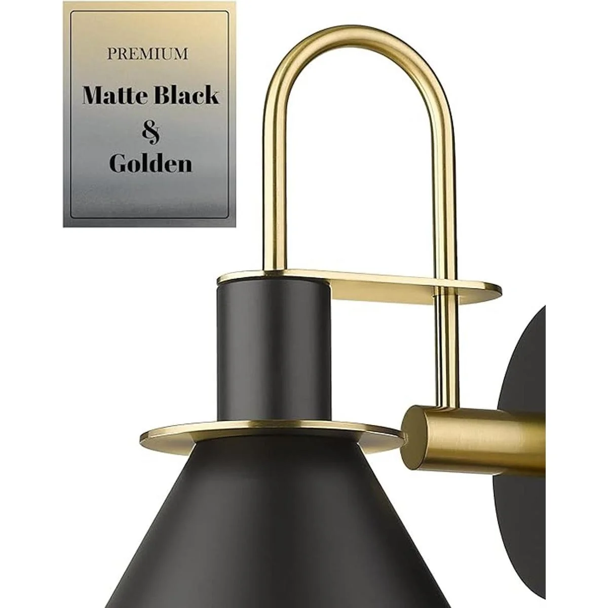 Diseño moderno Esta lámpara de pared individual complementa el aspecto de casi cualquier espacio interior o exterior, acabado negro mate decodificado con dorado, el interior de cobre refleja la luz para formar un contraste extremadamente acentuado. A prueba de humedad, pero no resistente al agua, mantenlo alejado del agua