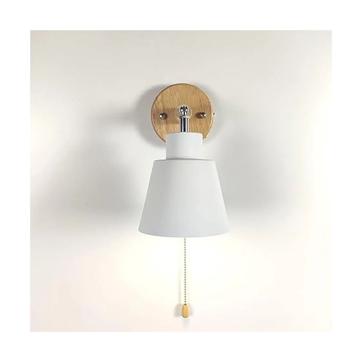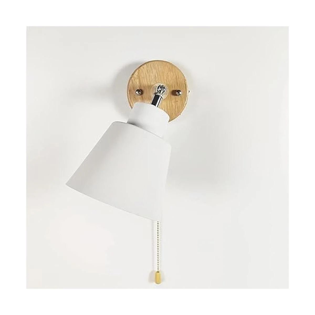 Lámpara de pared moderna con interruptor de cable de tracción, luz de pared interior E27, base industrial para dormitorio, sala de estar, accesorio de iluminación de metal giratorio de 350, cuerpo de lámpara giratorio, color blanco