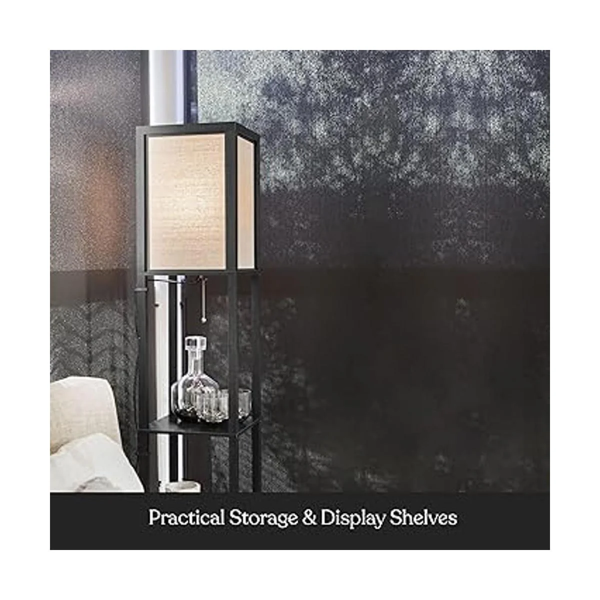 Triple Storage Lamp Shelf Combo: This durable tall lamp with stable structure, high loading lends a soft ambient glow to contemporary spaces while providing a 3 tiered display shelving for added convenience. Style and function combine to brighten up your room and provide a storage or display area for vases, books, or other items. Utilize the convenience of this floor lamp in your bedroom, living room, guest room, foyer, or office.