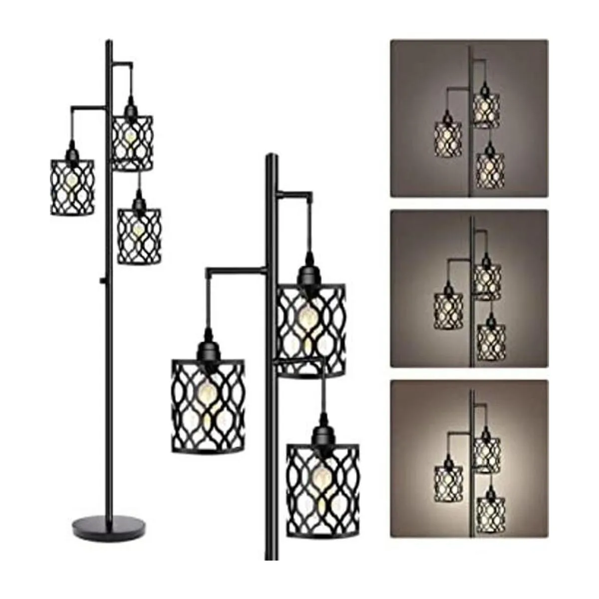 Aspecto elegante y único: si quieres decorar tu hogar, esta lámpara de pie brillante será una buena opción. Está equipado con 3 hermosas jaulas colgantes que pueden añadir un efecto decorativo a tu habitación. Estas lámparas industriales de pie son perfectas para áreas interiores generales que incluyen el comedor, sala de estar, dormitorios, oficinas, cocina, pasillo, cafetería, sótano, bar y club.