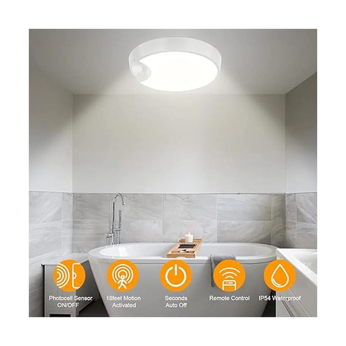 Lámpara de techo con sensor de movimiento de batería de 5500 K 6000 mAh, lámpara LED recargable con patrón remoto, función de temporizador, luz activada por movimiento de 7.8 pulgadas para baño, pasillo, garaje, sótano.