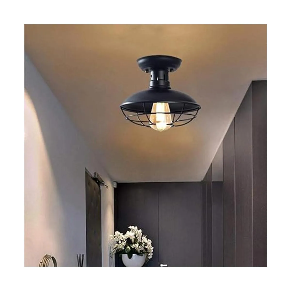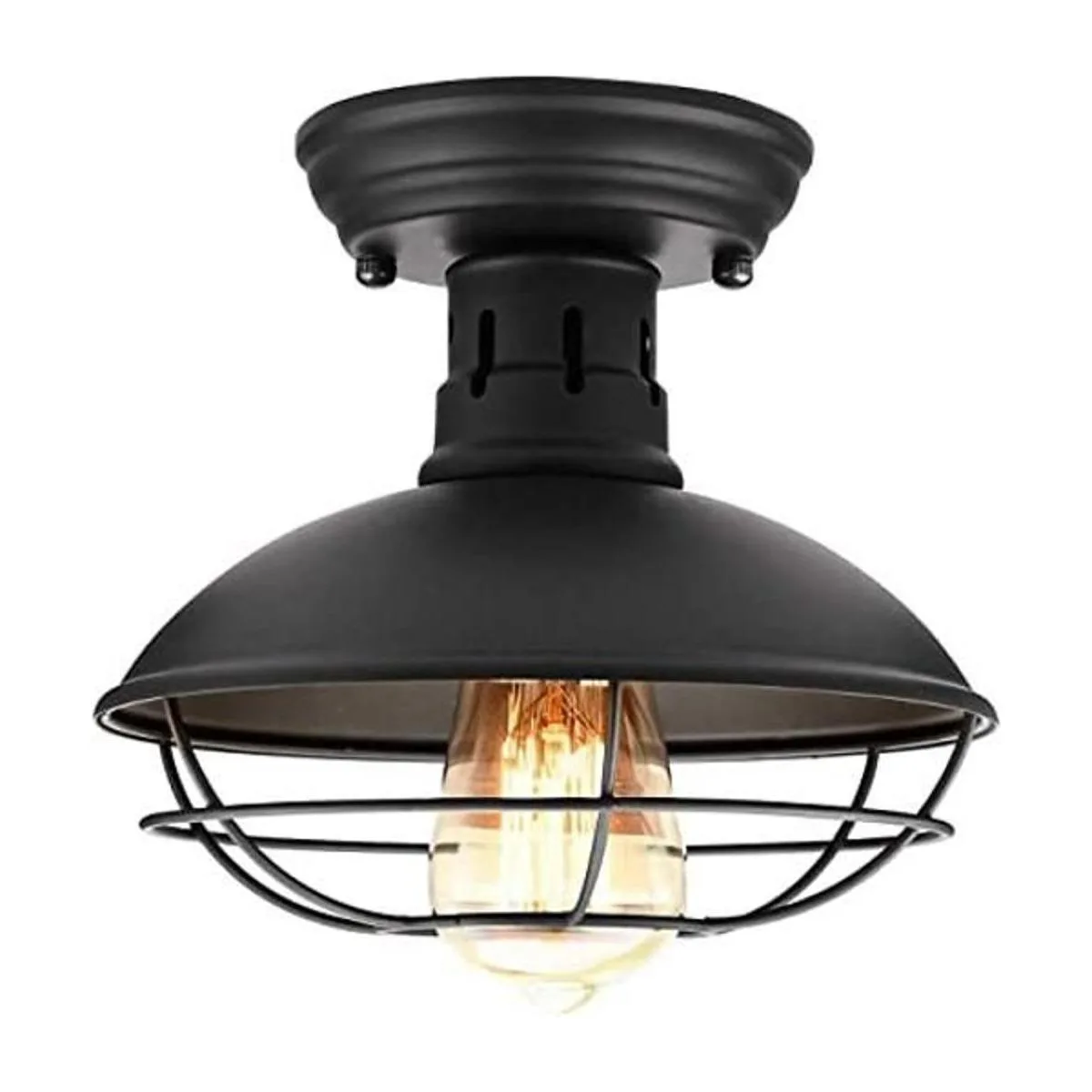 Lámpara de techo de montaje empotrado Easric Industrial Lámpara de techo rústica de metal negro con jaula cerca de la lámpara de techo E26 para pasillo, vestíbulo, cocina, porche
