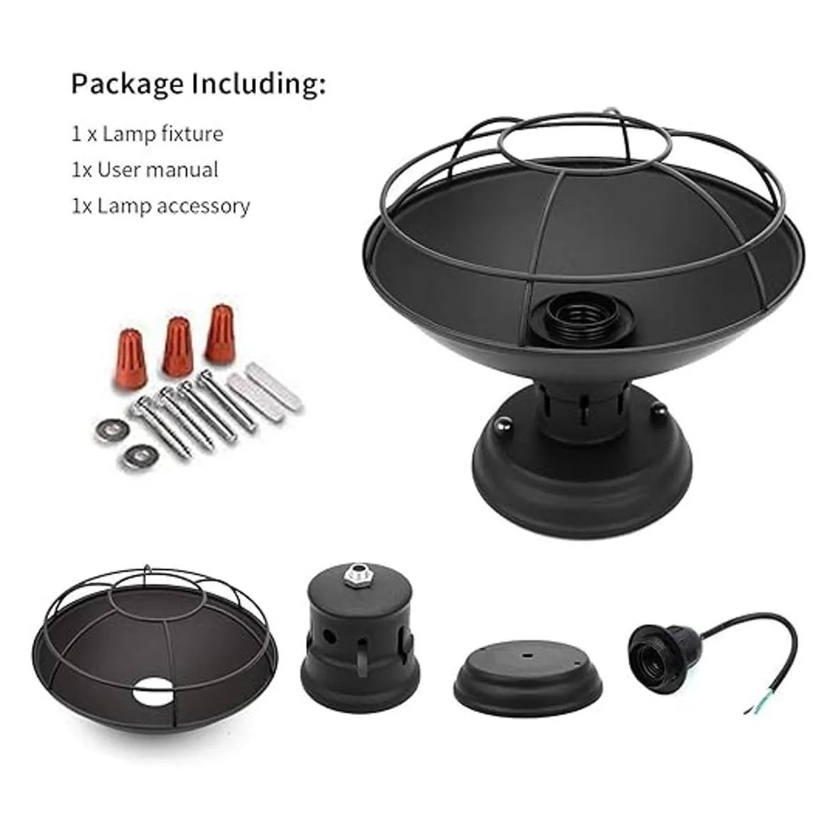 Fácil de instalar: la lámpara industrial incluye todos los accesorios de montaje y manual de instalación para una instalación rápida y fácil. La lámpara de techo para exteriores te permite utilizar cualquier bombilla E26: Edison/LED/CFL. Bombilla no incluida