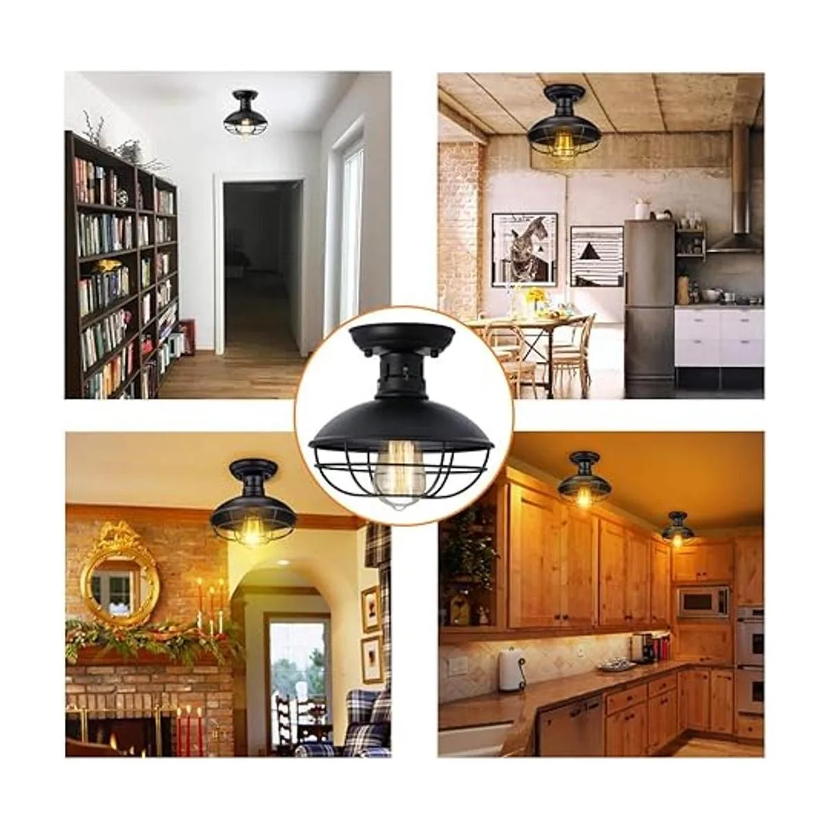 Diseño de jaula de metal: esta lámpara de techo negra cuenta con un acabado negro mate único y una pantalla de jaula de metal, añade encanto vintage de granja para tu hogar y crea un ambiente cálido y acogedor.