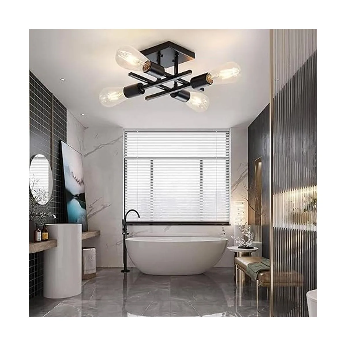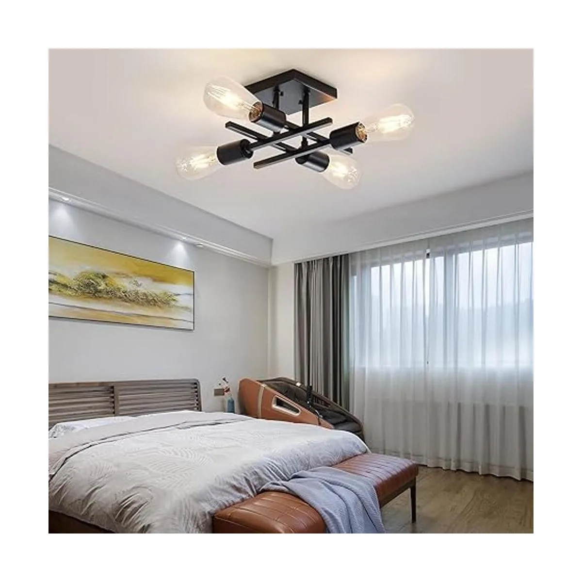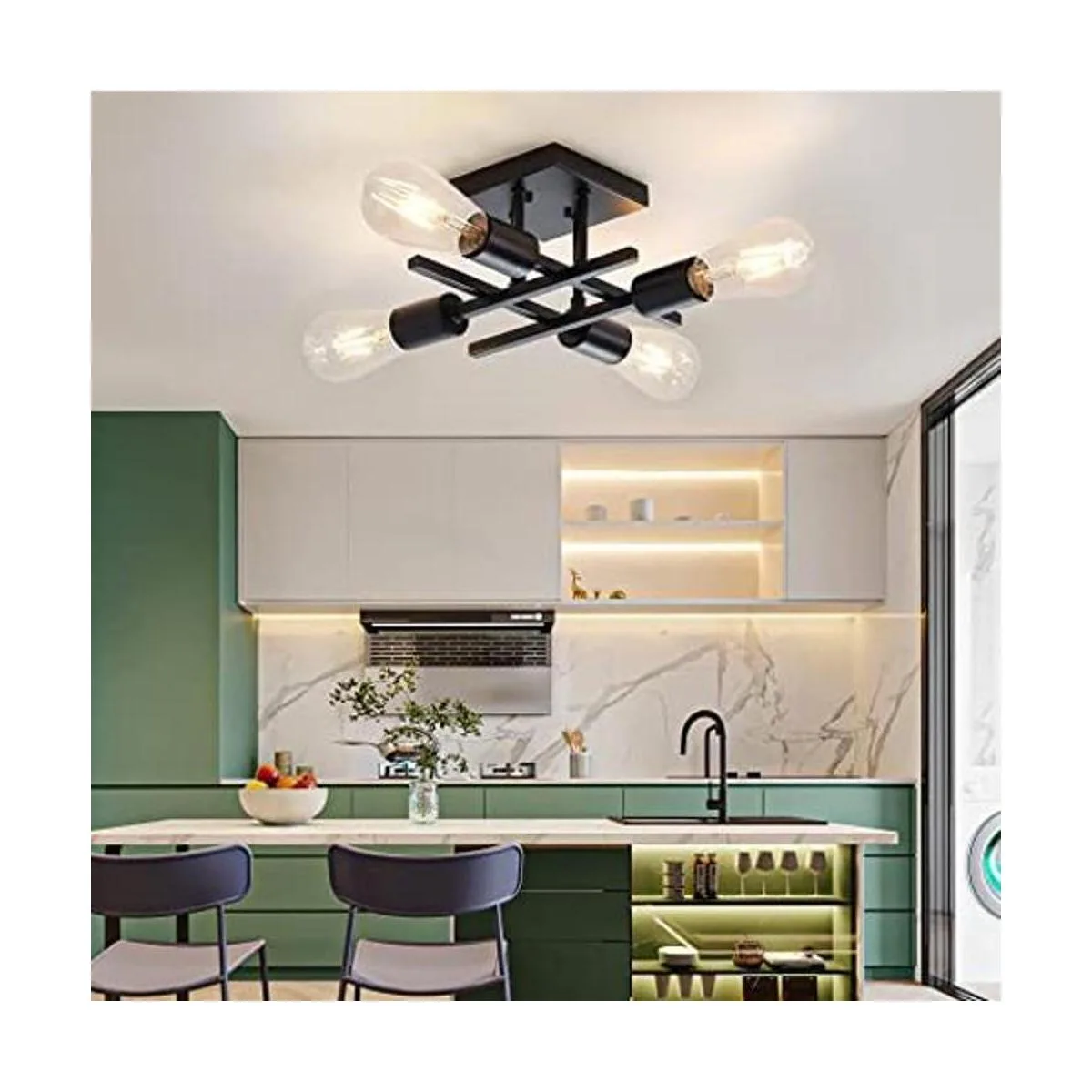 Lámpara de techo industrial de 4 luces semiempotradas, lámpara de techo moderna con base E26 Sputnik para cocina, dormitorio, sala de estar, estudio, entrada
