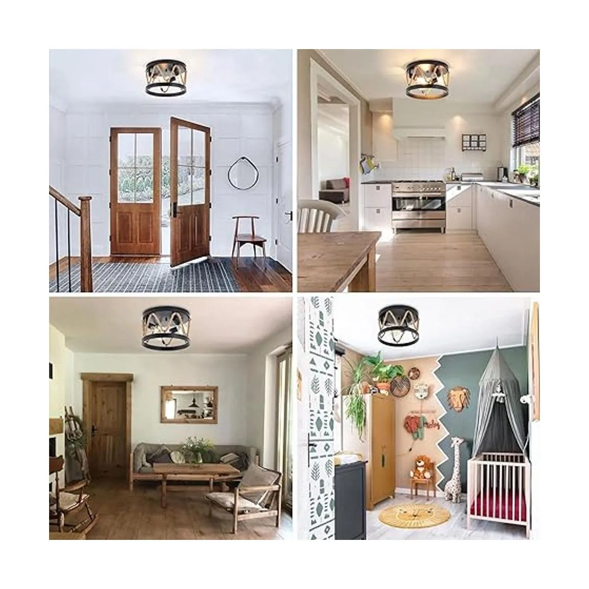 Fácil instalación: todos los accesorios de montaje e instrucciones de instalación rápidas y fáciles están incluidos en el paquete. Esta lámpara de techo de dormitorio debe estar cableada y no tiene un montaje tedioso; puedes instalar y atornillar la bombilla en el enchufe en minutos, conectar los cables e instalar la lámpara de entrada de granja en el techo.