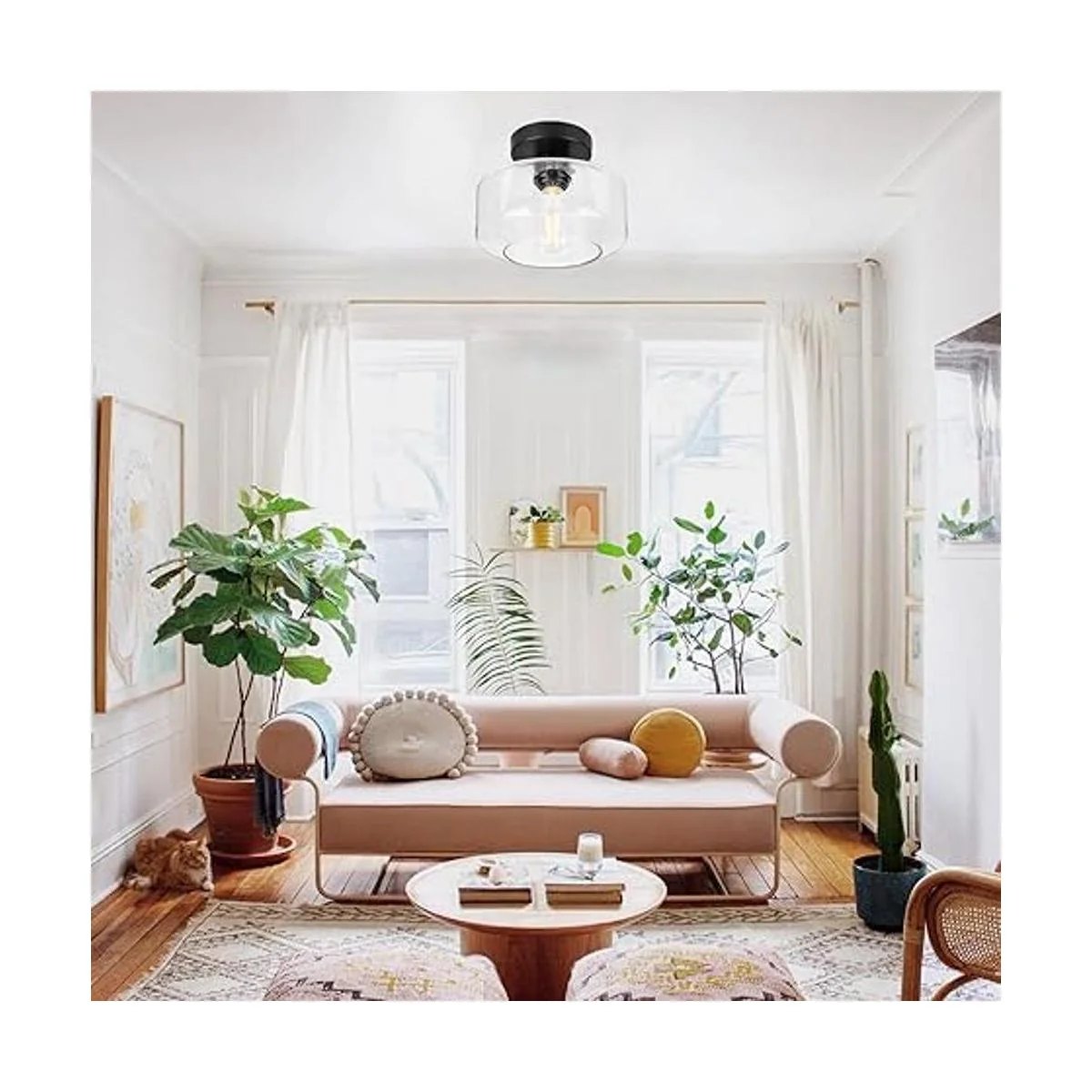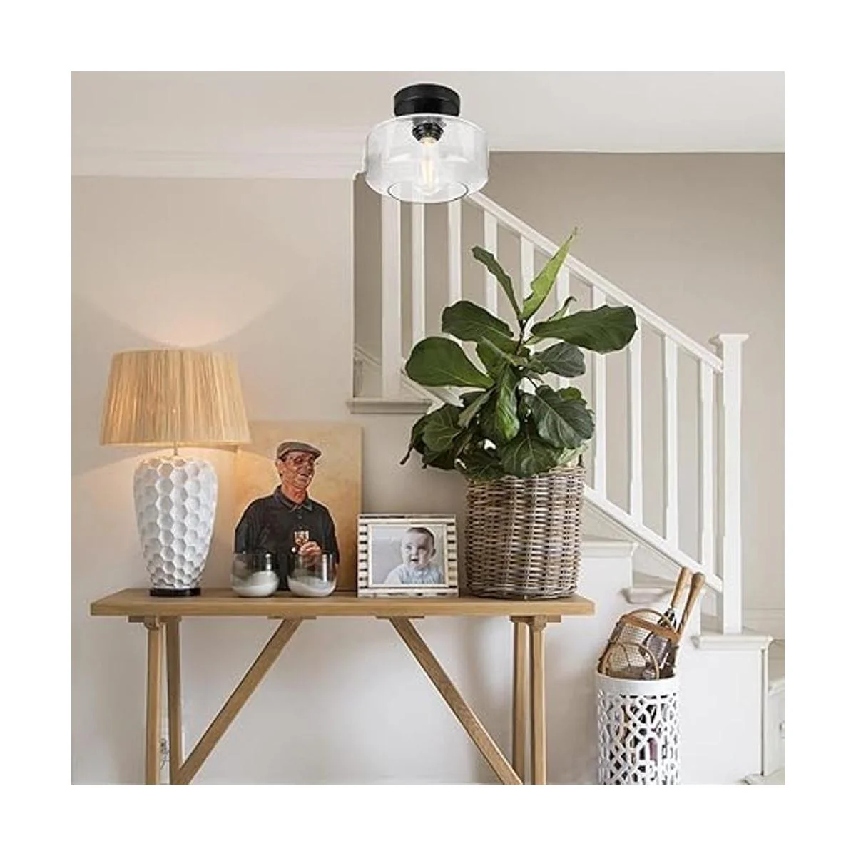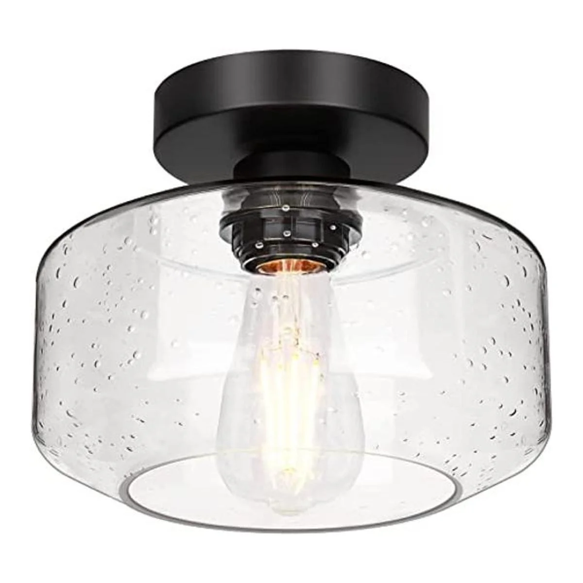 Diseño de montaje semiempotrado y estilo vintage: esta lámpara de techo es perfecta para decoraciones vintage de granja e industriales. Una base negra mate complementa el cristal semillado y eleva el aspecto industrial clásico de esta lámpara de techo, el cristal de burbujas emite una bonita sombra en el techo, crea un ambiente romántico a tu hogar.