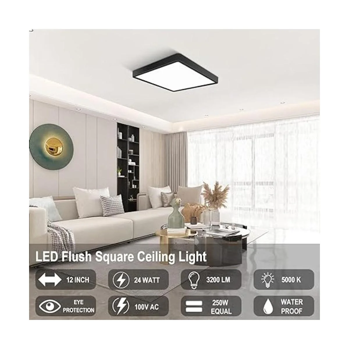 Lámpara de techo LED cuadrada de 12 pulgadas, 24 W, 5000 K, luces de techo superbrillantes, 3200 lm, lámpara LED de montaje empotrado, accesorios de iluminación empotrada para cocina, baño, dormitorio, pasillo, oficina y garaje