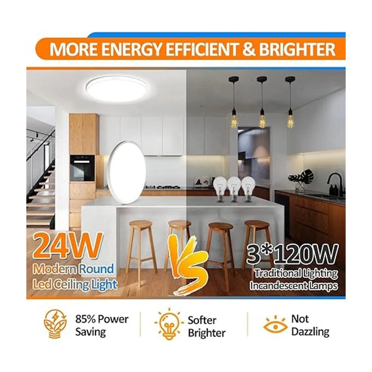 Ahorro de energía y factura mensual más baja: la lámpara de techo de montaje empotrado de 12 pulgadas, 24 W, 2880 lm es la mejor alternativa a las bombillas incandescentes tradicionales de 120 W. Menor consumo de energía con hasta un 85 de ahorro de energía. La lámpara de techo puede reducir las facturas de electricidad, y una mayor salida brillante es la mejor opción para la vida en casa.
