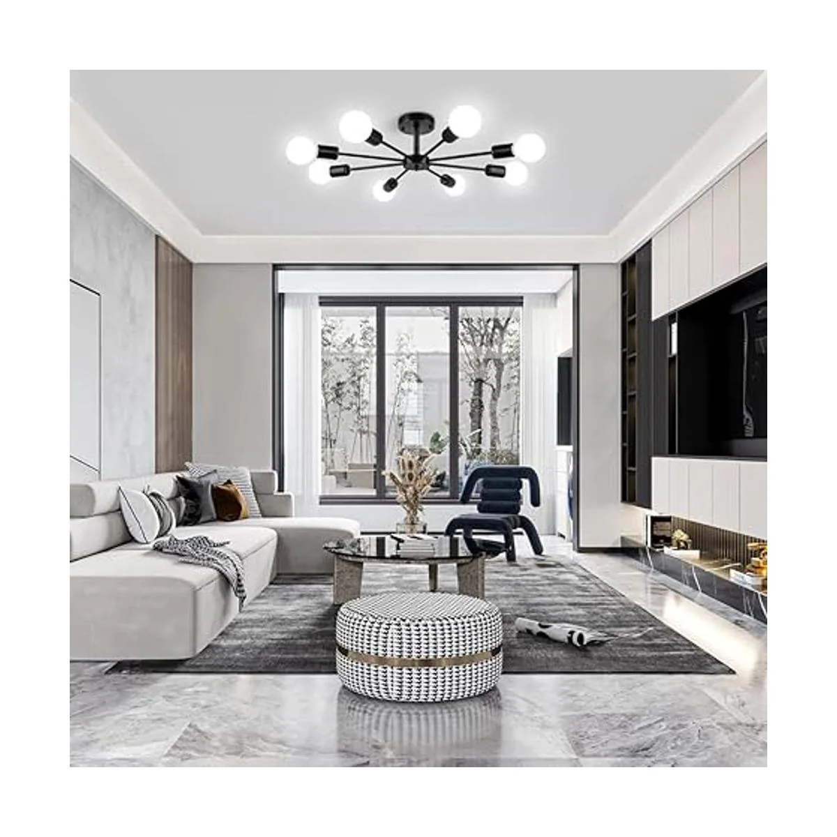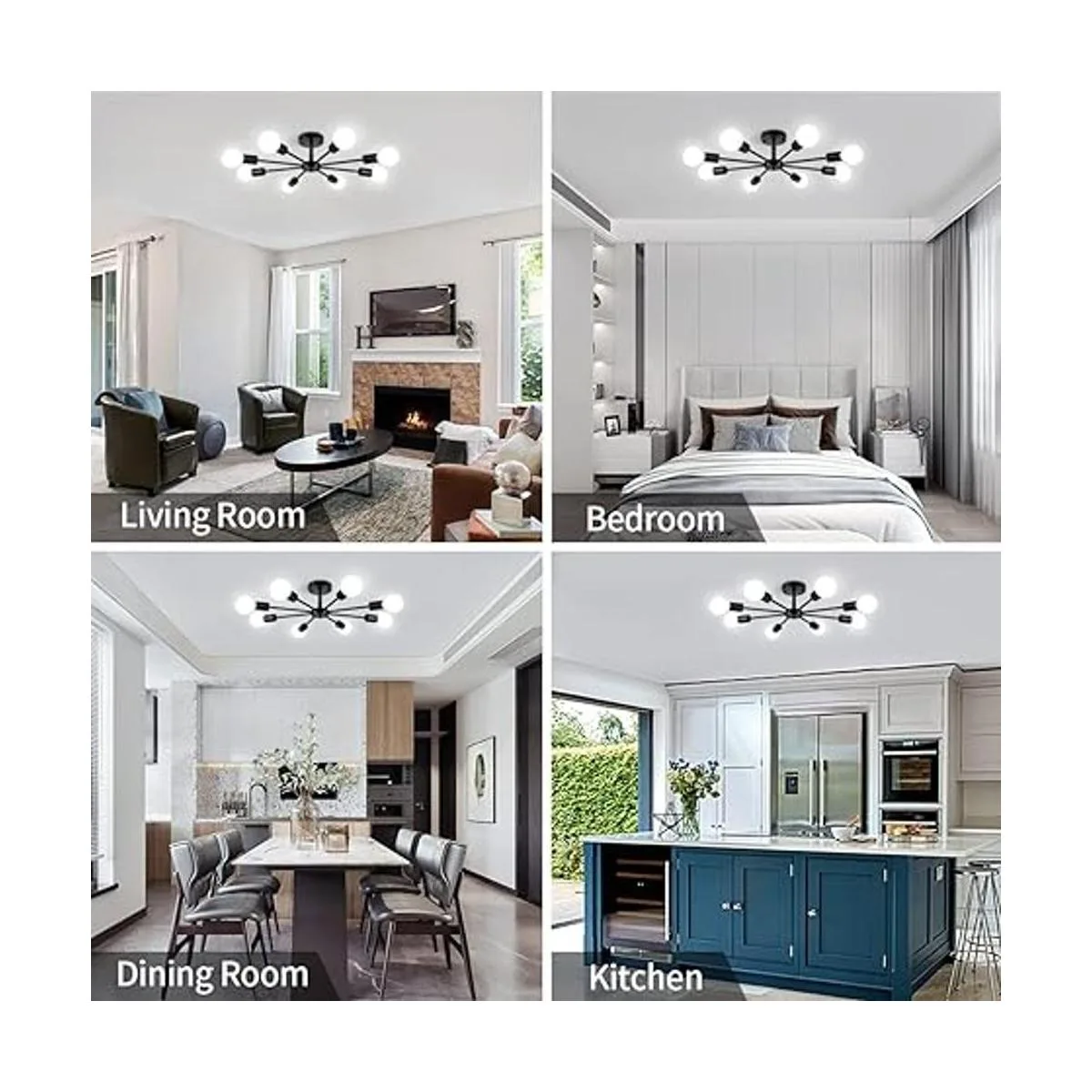 Lámpara de techo semiempotrada, 8 luces, lámpara de araña moderna para sala de estar, lámpara de araña Sputnik negra para dormitorio, cocina, estudio, oficina, base E26